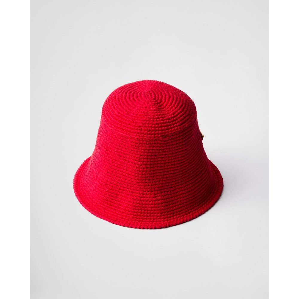 自营欧洲直邮Prada普拉达 女士红色棉金属三角标识圆顶帽子礼帽