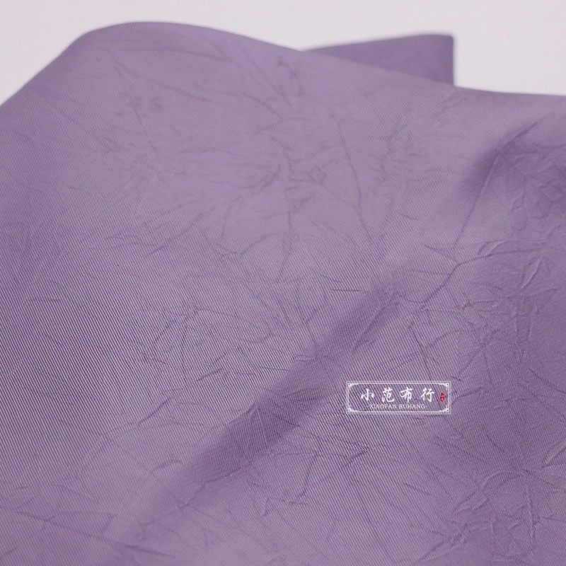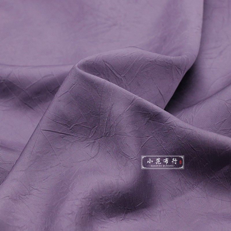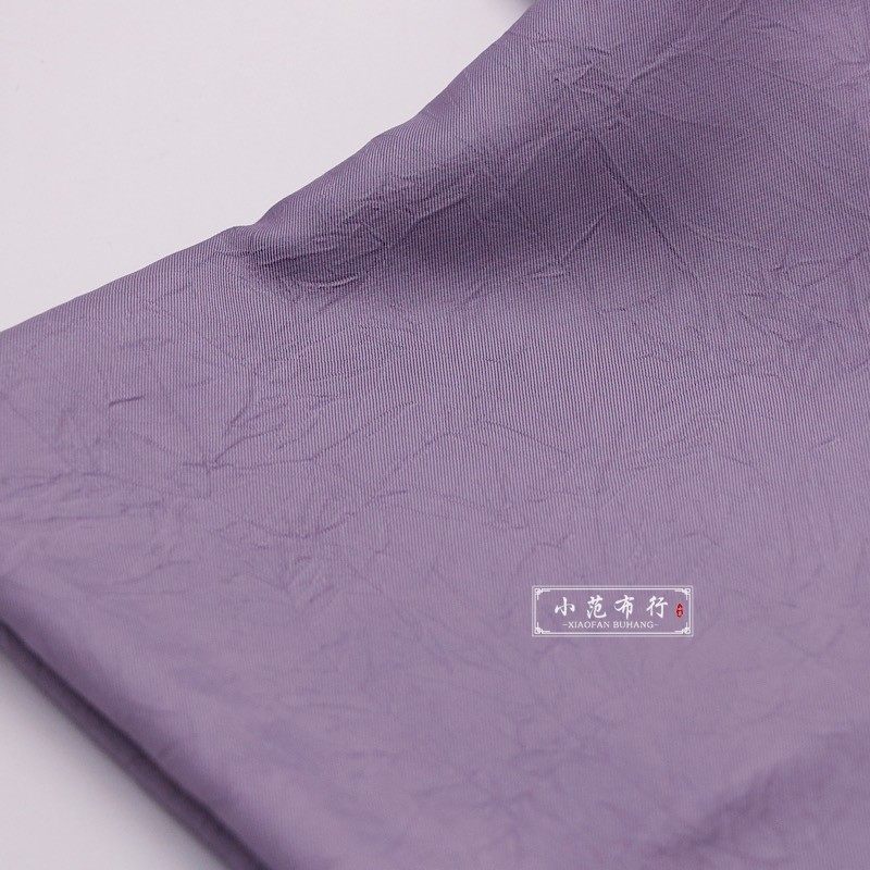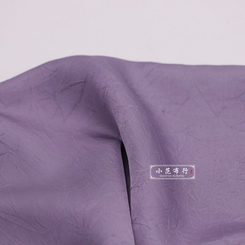 木槿紫抓花褶皱聚酯纤维抗皱汉服设计师服装面料 娃衣洛丽塔布料