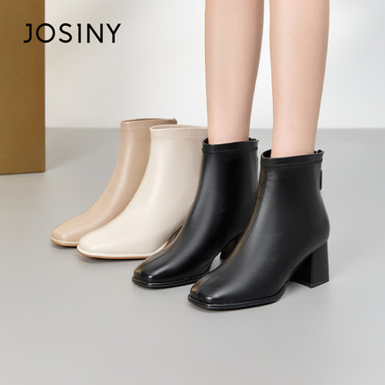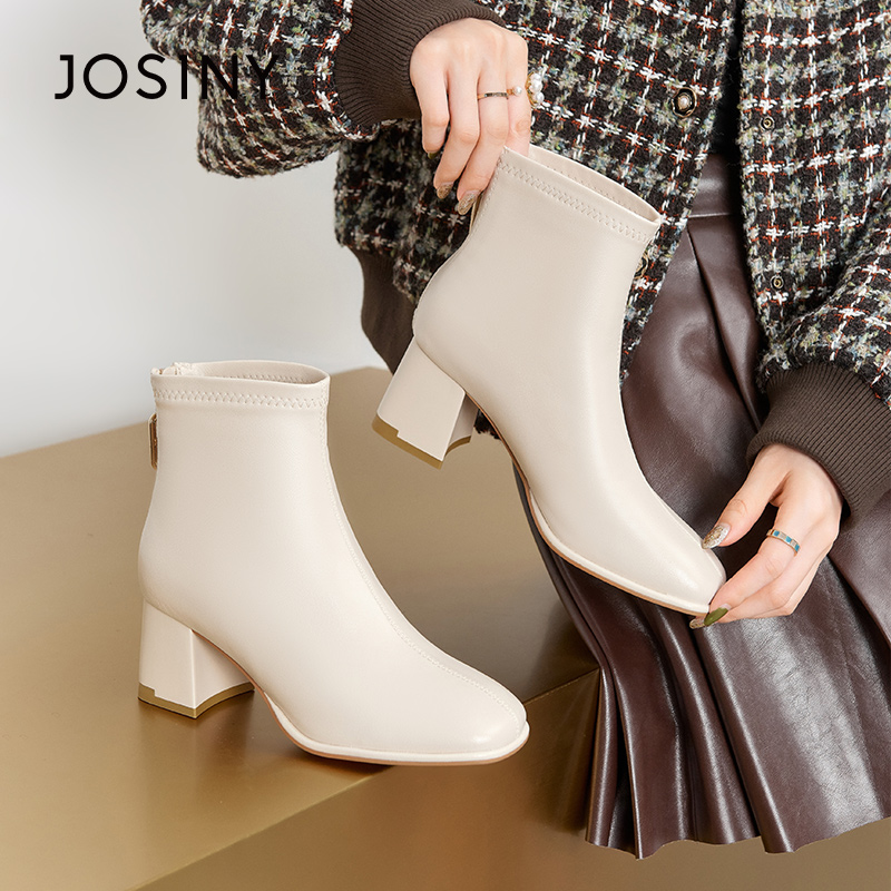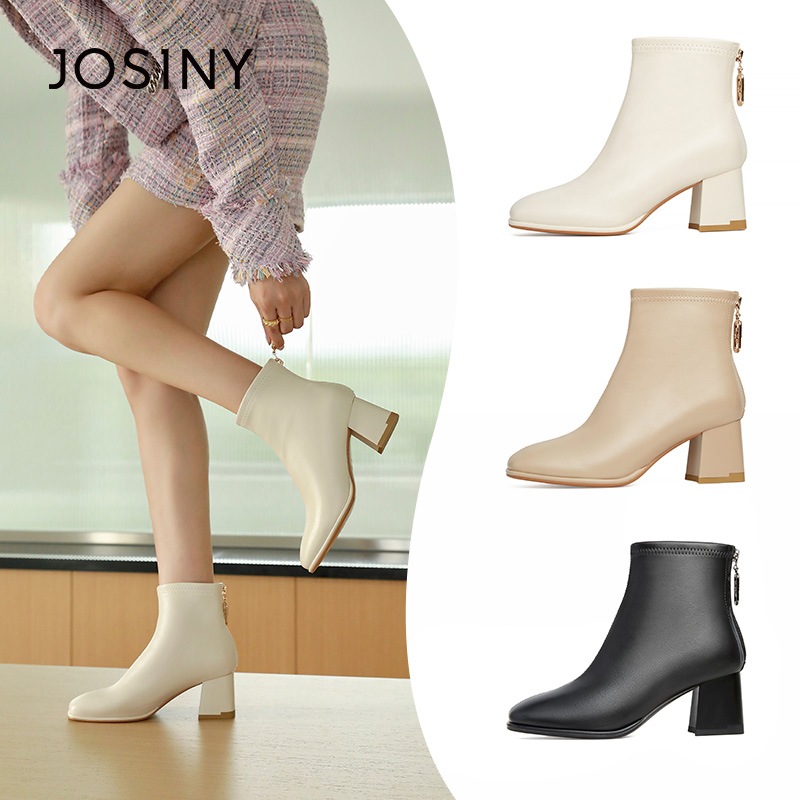 卓诗尼冬季新款女时装靴优雅粗跟后拉链高跟时尚休闲通勤女短靴