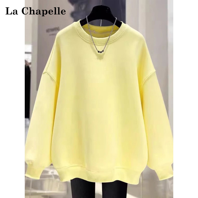 拉夏贝尔加绒圆领打底衫女秋冬中长款卫衣遮屁股配鲨鱼裤的上衣