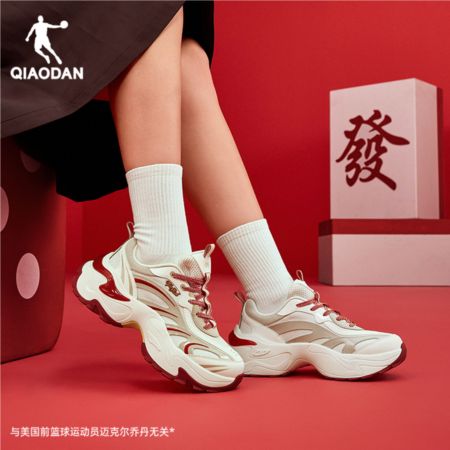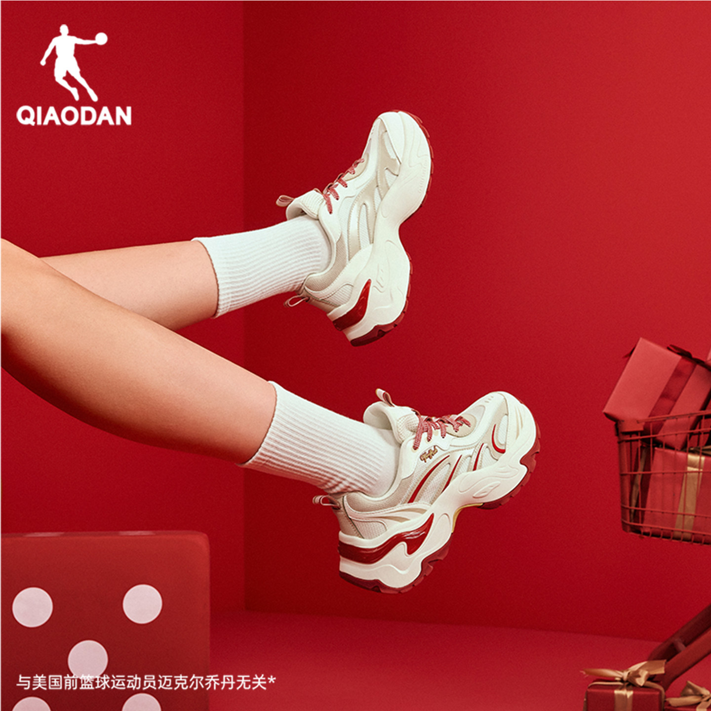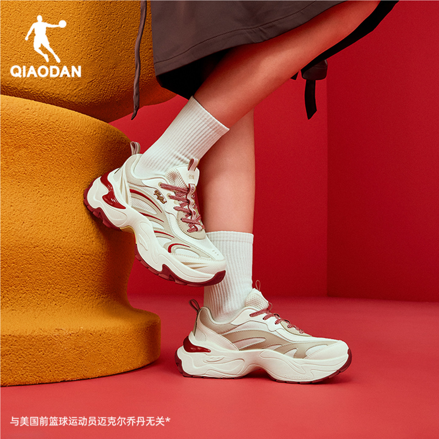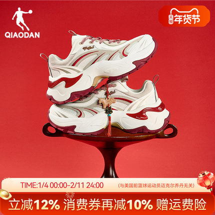 乔丹新年红色软底蝴蝶鞋女休闲鞋春季新款厚底增高正品运动老爹鞋