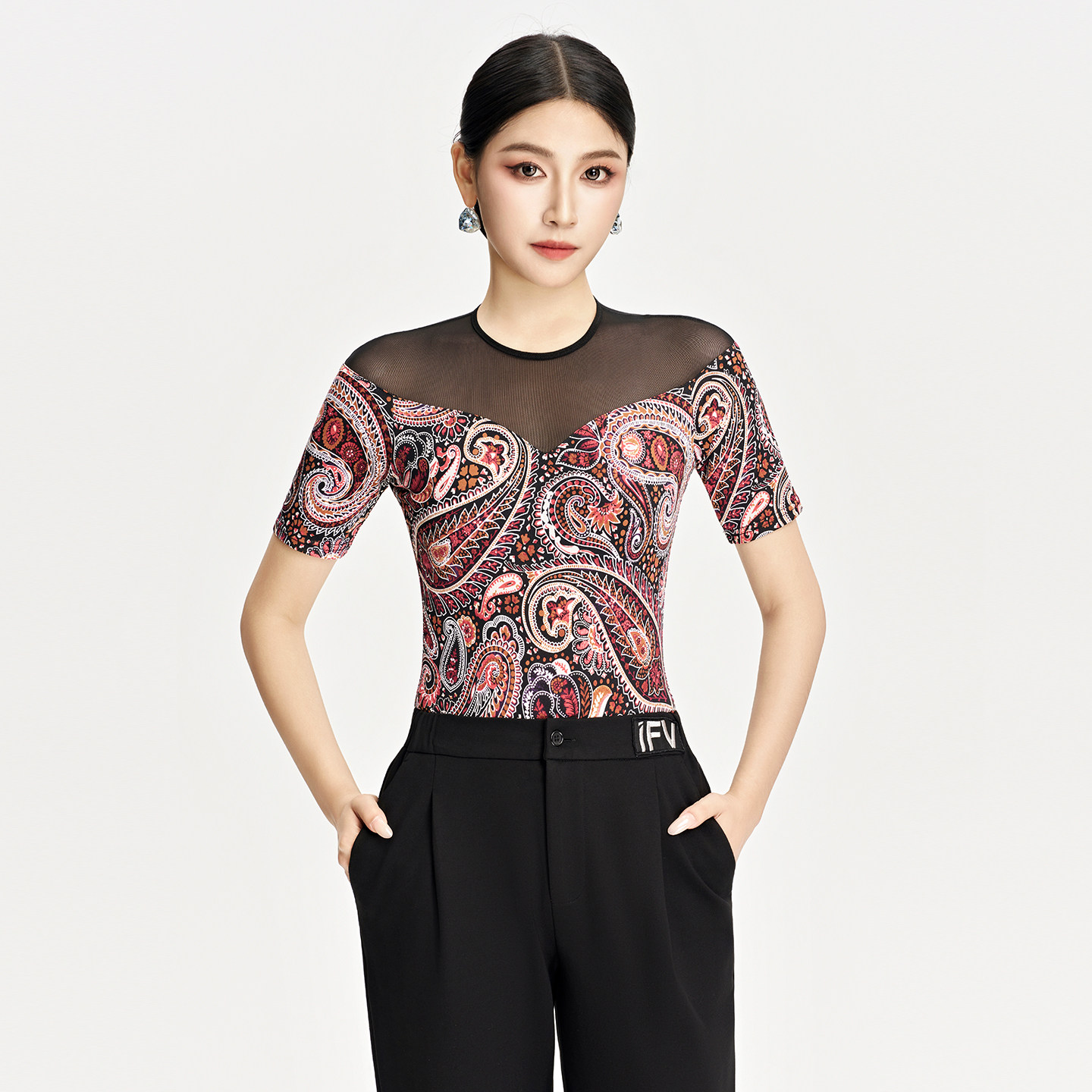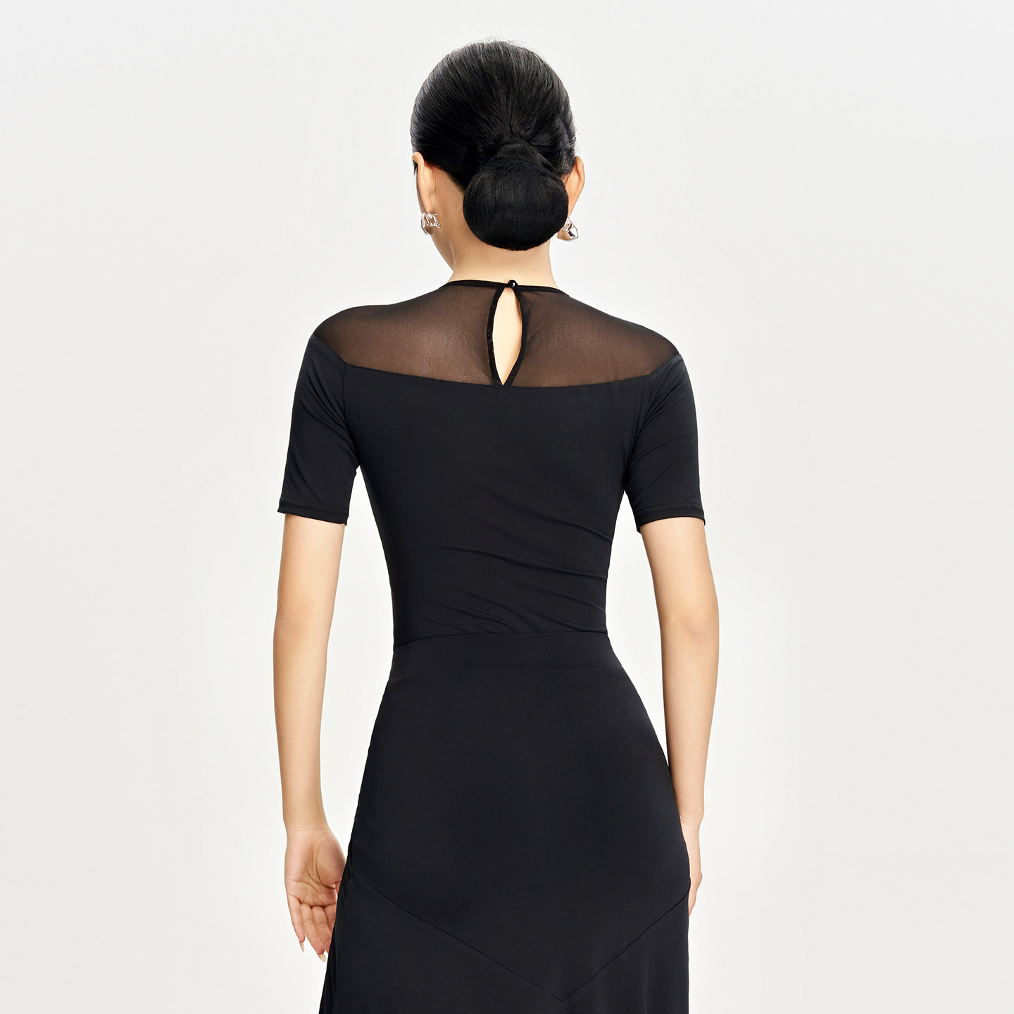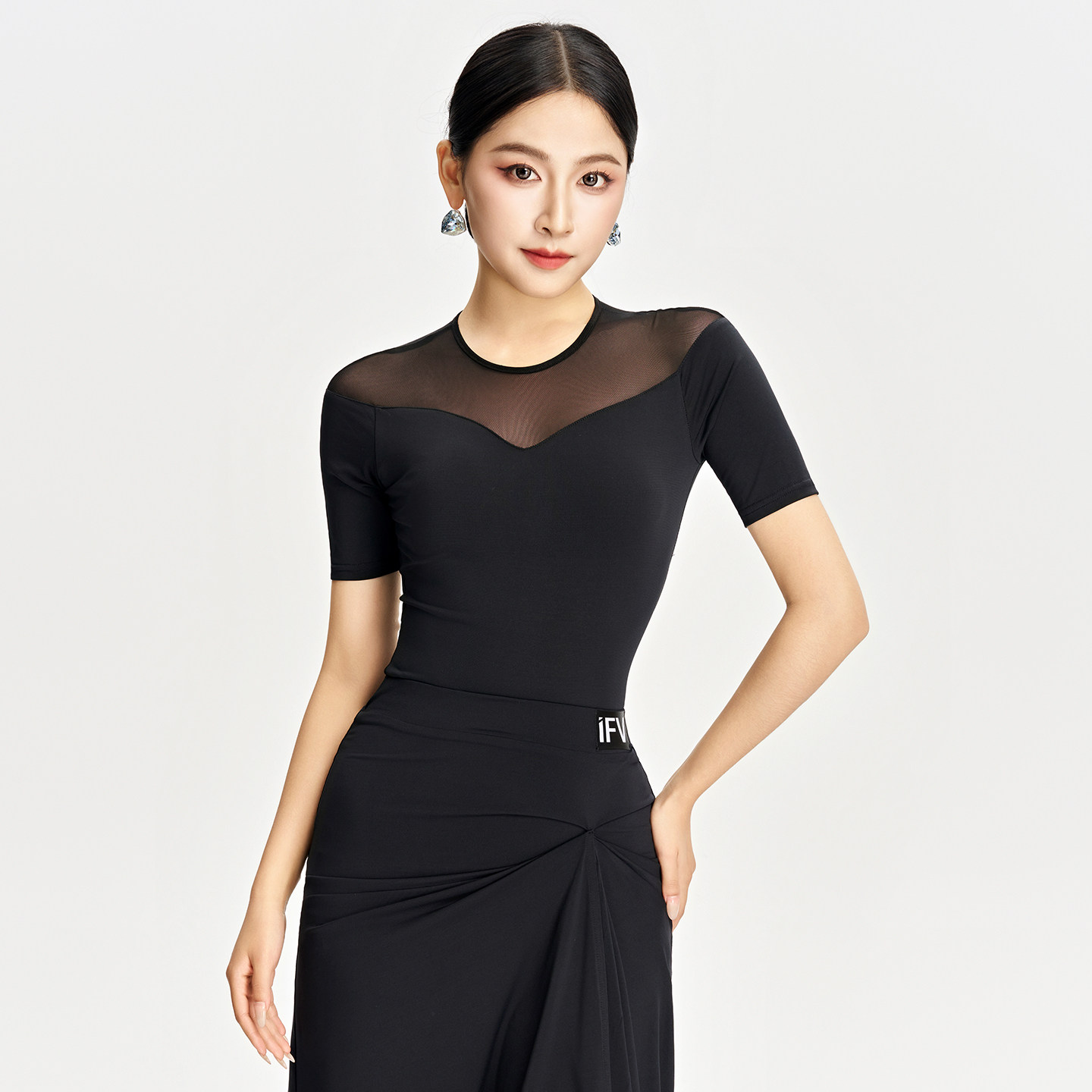 IFV拉丁舞上衣女网纱透视短袖练功服摩登舞形体舞蹈服新款1045