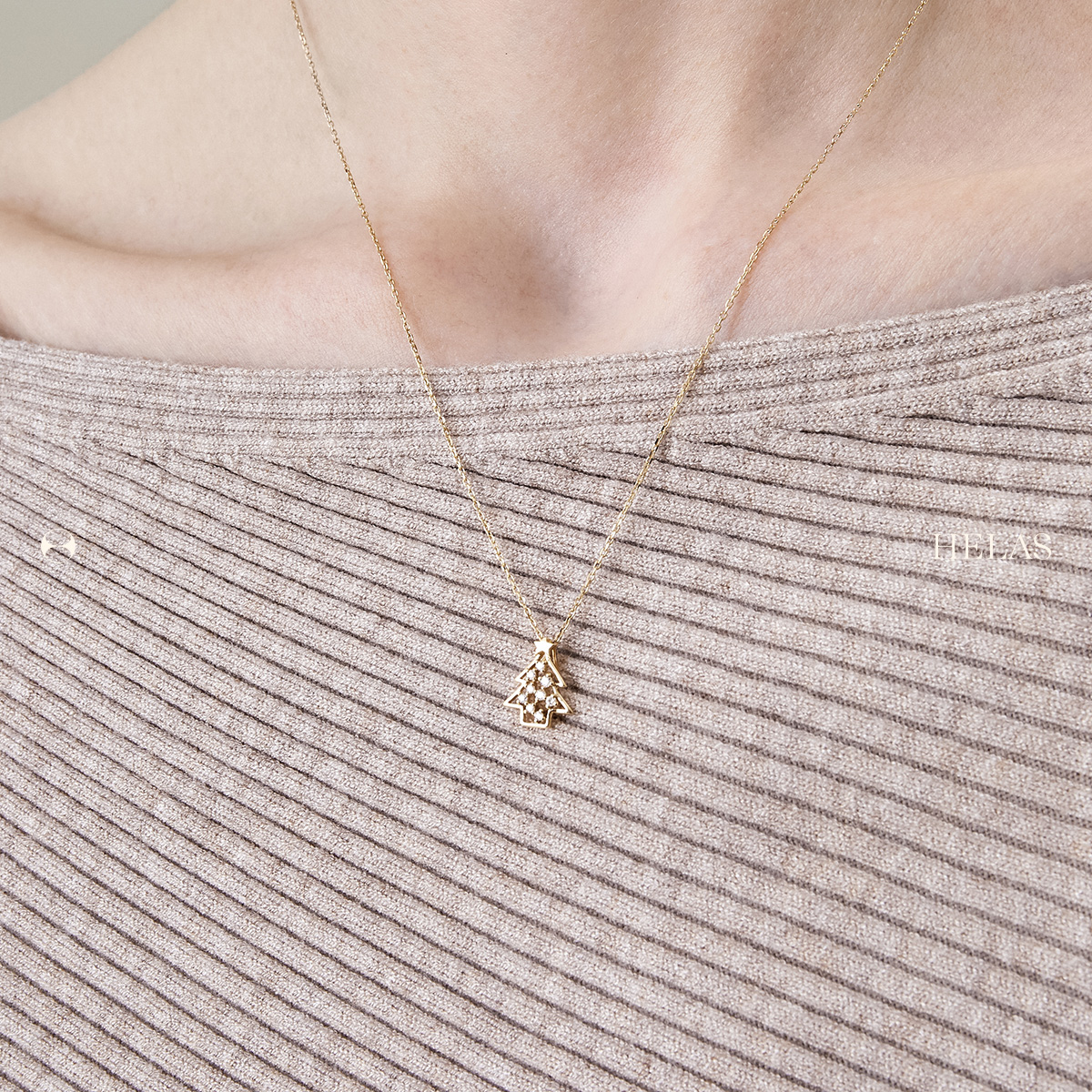 HELAS赫拉18K金钻石圣诞树项链