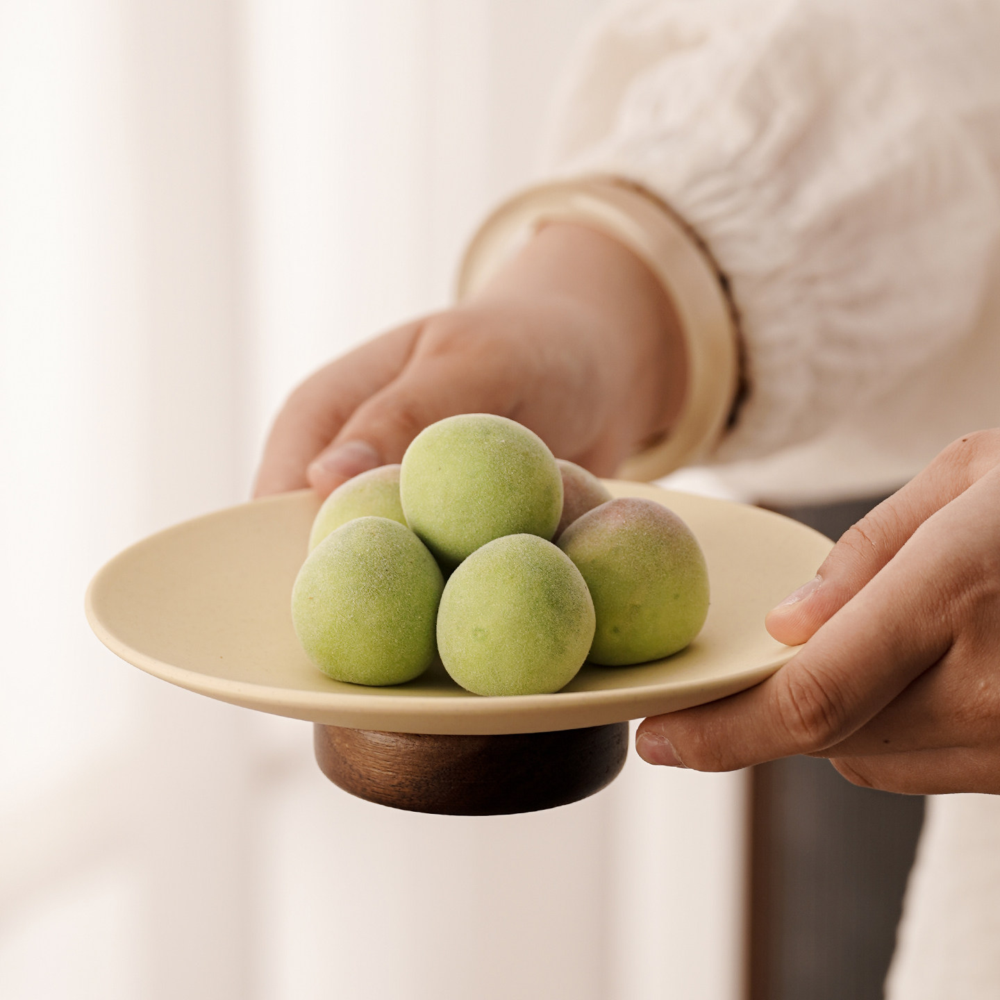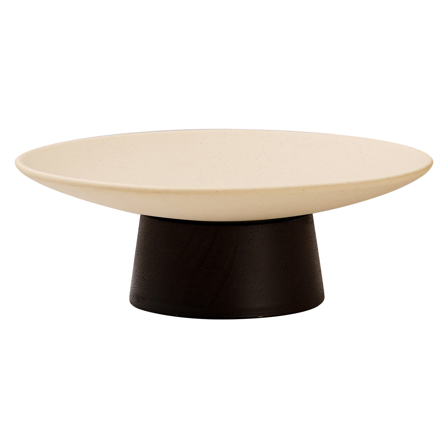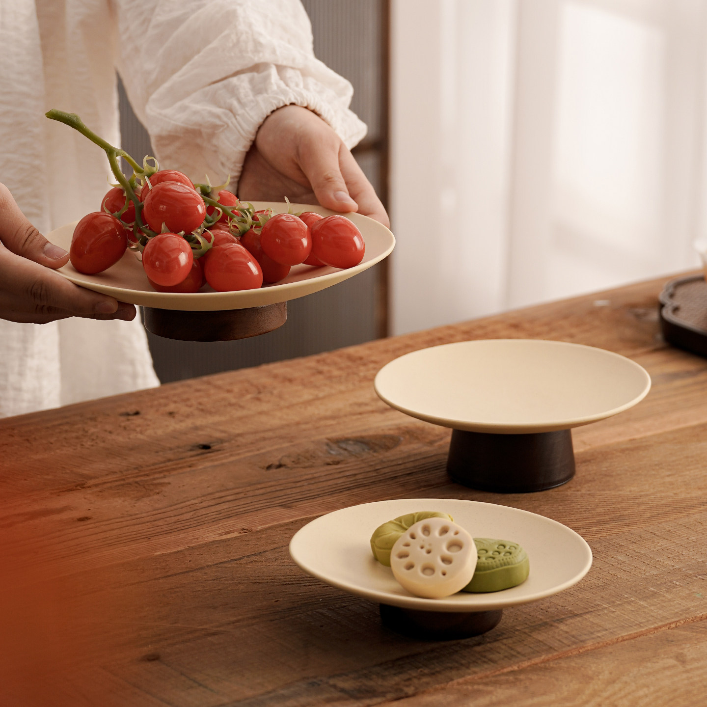 中式茶点盘高脚象牙白粗陶瓷托盘