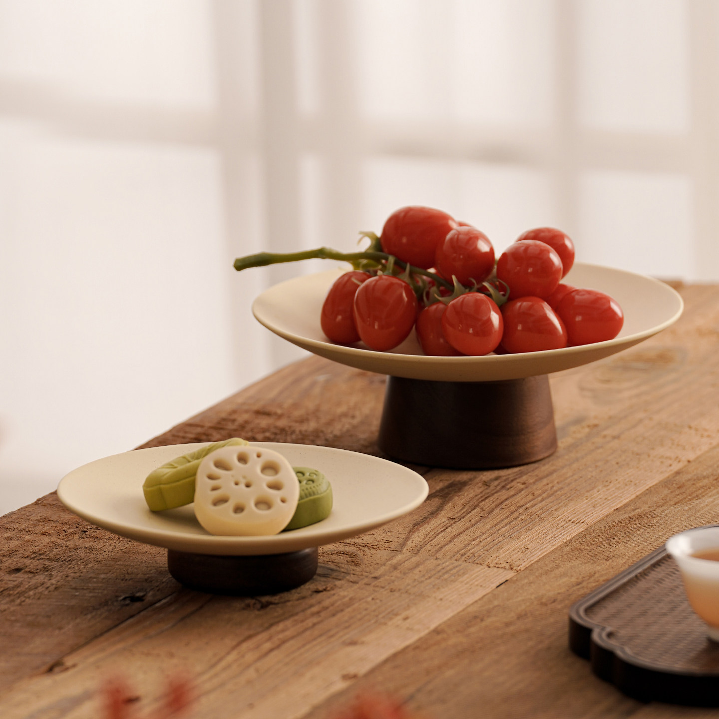 中式茶点盘高脚象牙白粗陶瓷托盘糖糕点心水果碗家用酒店餐厅收纳