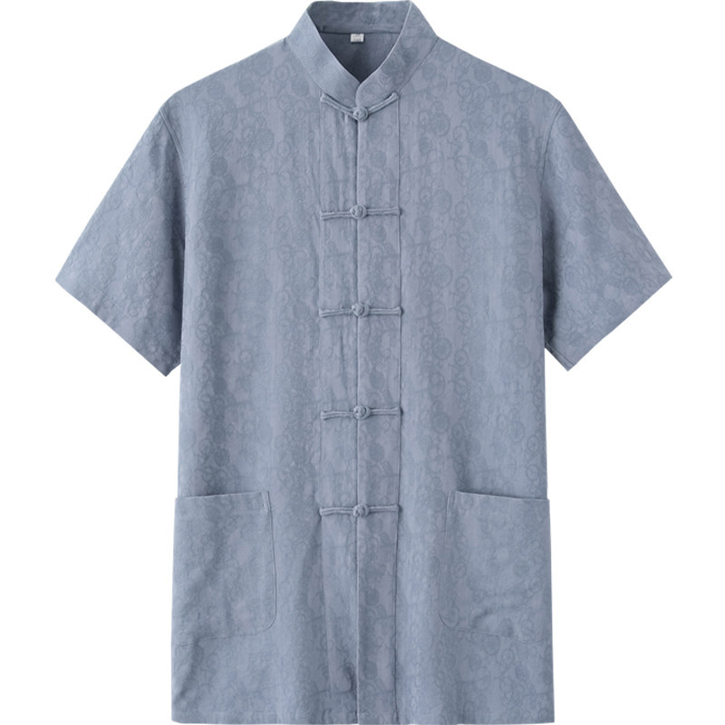 亚麻中老年短袖唐装男式衬衫中国风复古盘扣居士汉服爸爸半袖上衣