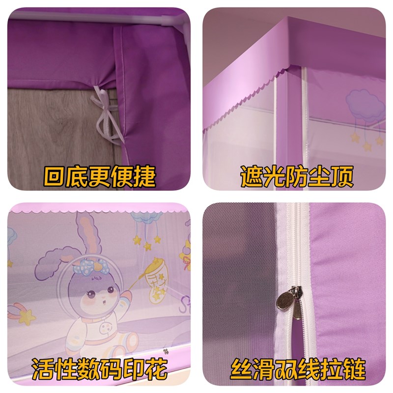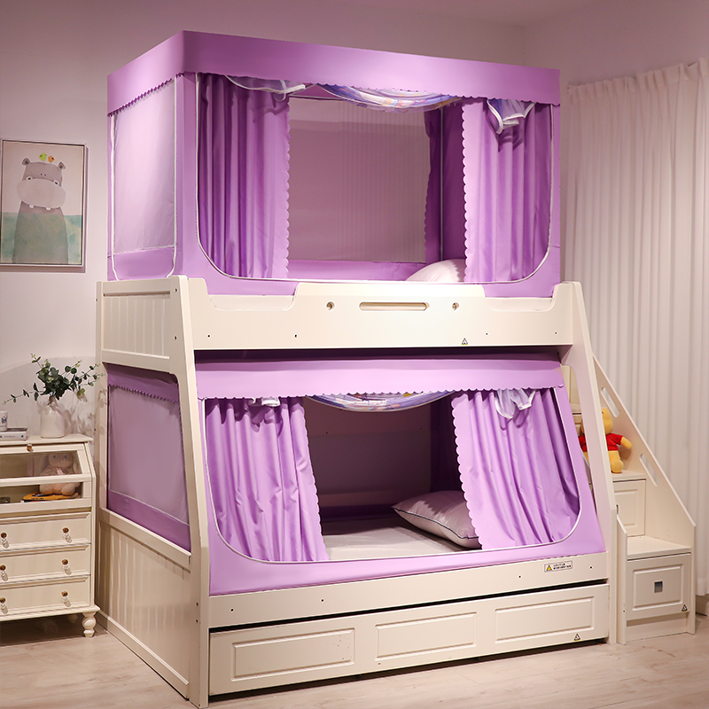 子母床蚊帐1.2m儿童防摔防尘梯形双层高低床卡通书架款遮光上下铺