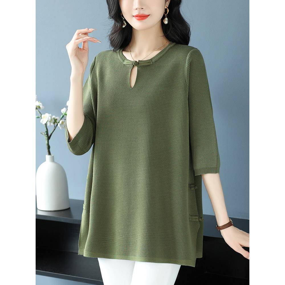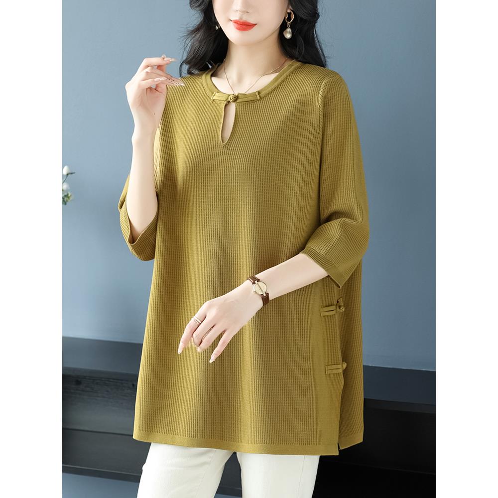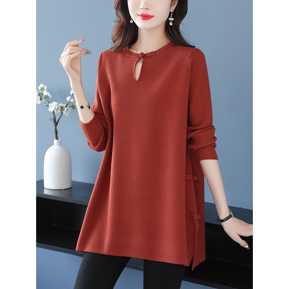 中年妈妈秋冬宽松中长款毛衣女加肥加大码遮肚洋气百搭打底针织衫