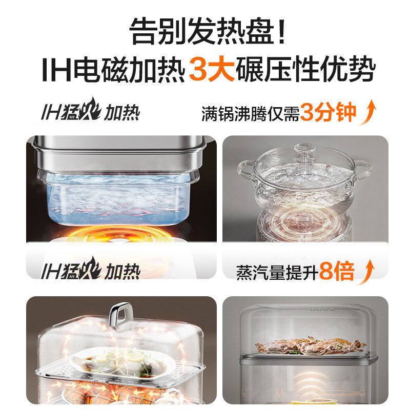 苏泊尔电蒸锅IH猛火304不锈钢多功能家用三层蒸煮炖一体蒸笼蒸锅