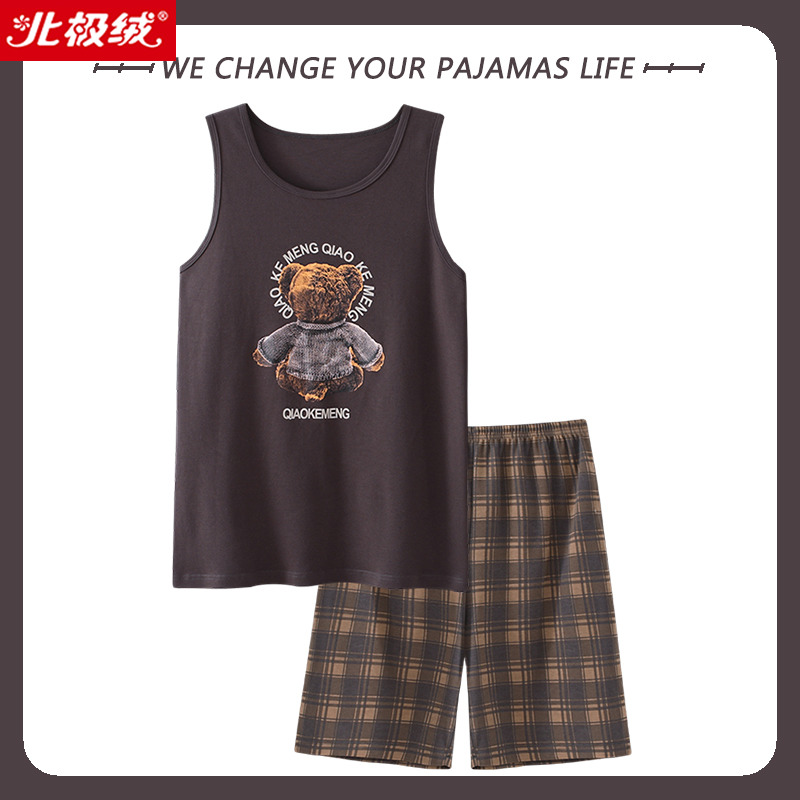 2025年男士睡衣夏季纯棉休闲简约背心无袖薄款夏天家居服两件套装