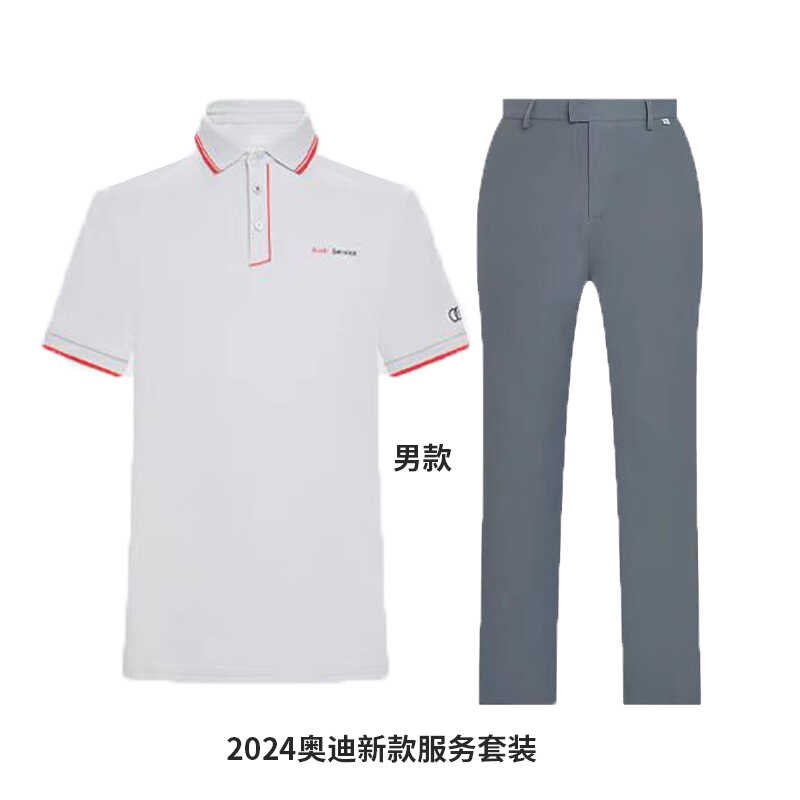2024新款奥迪男士服务顾问工装裤短袖POLO衫4S店浅灰长裤夏裤t恤