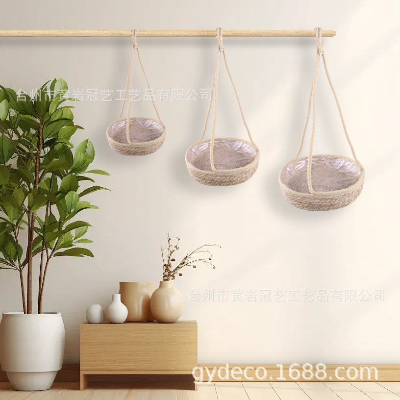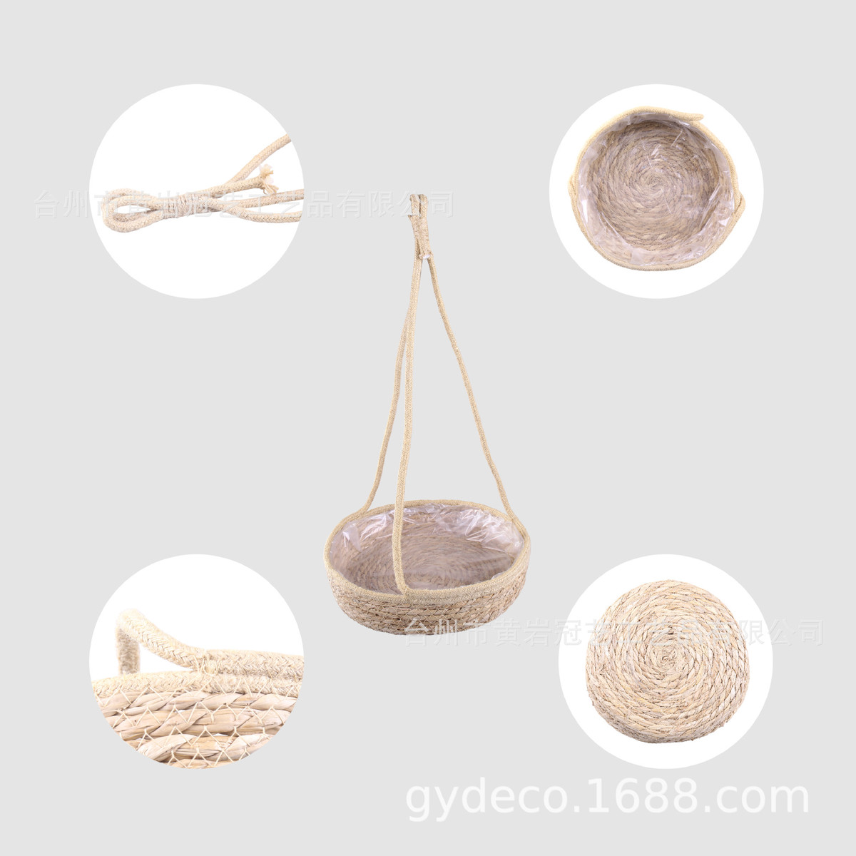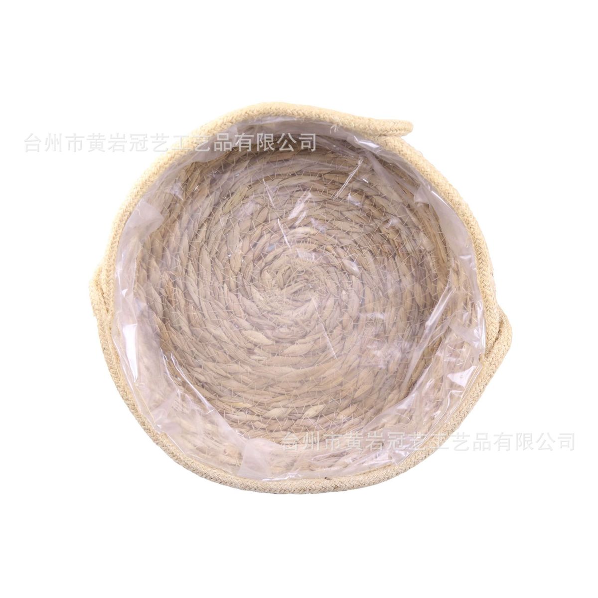 热销天然棉绳蒲草混合桌面编织收纳筐杂物手工编织收纳篮吊篮