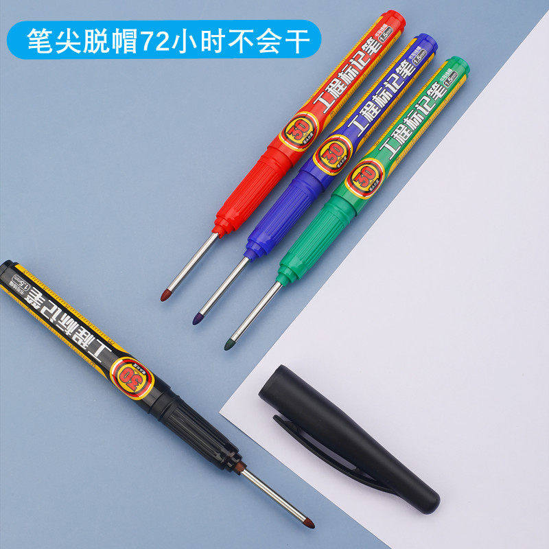 宝克长头记号笔黑色防水防油木工工程深孔标记30mm长嘴加长划线笔