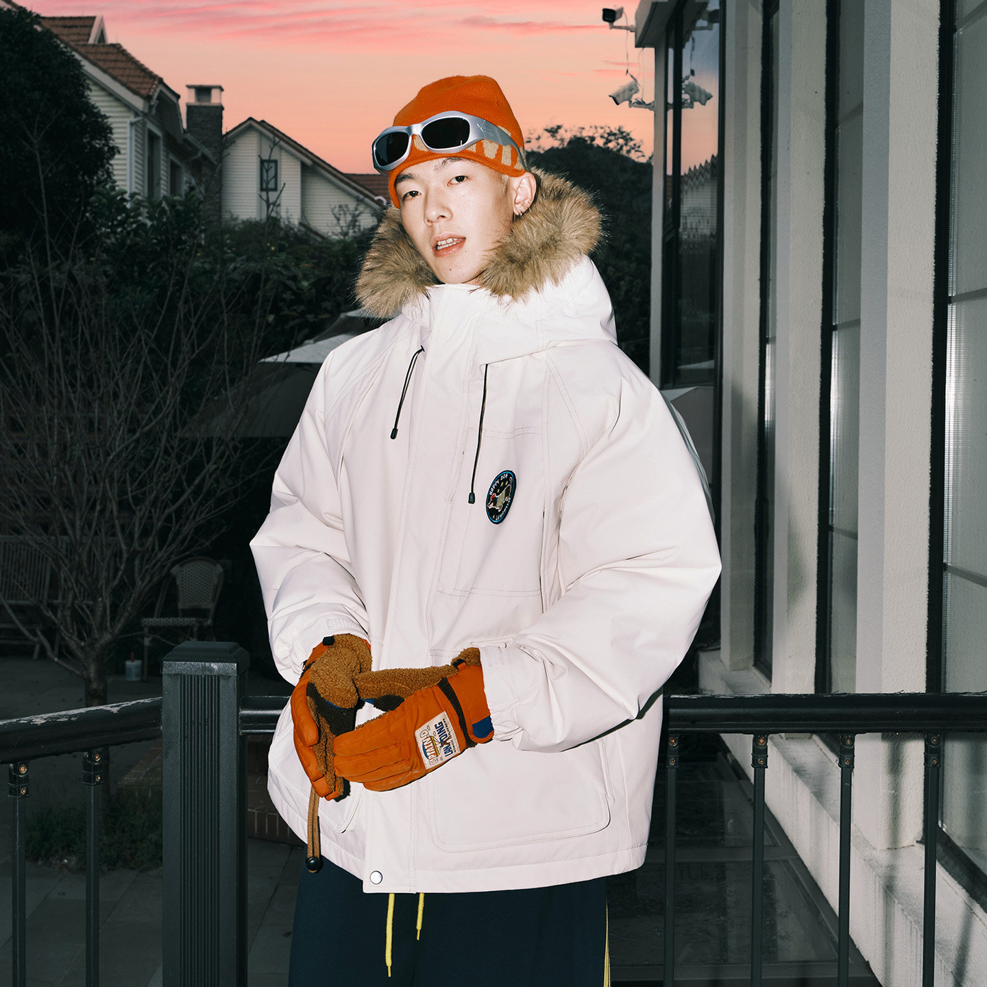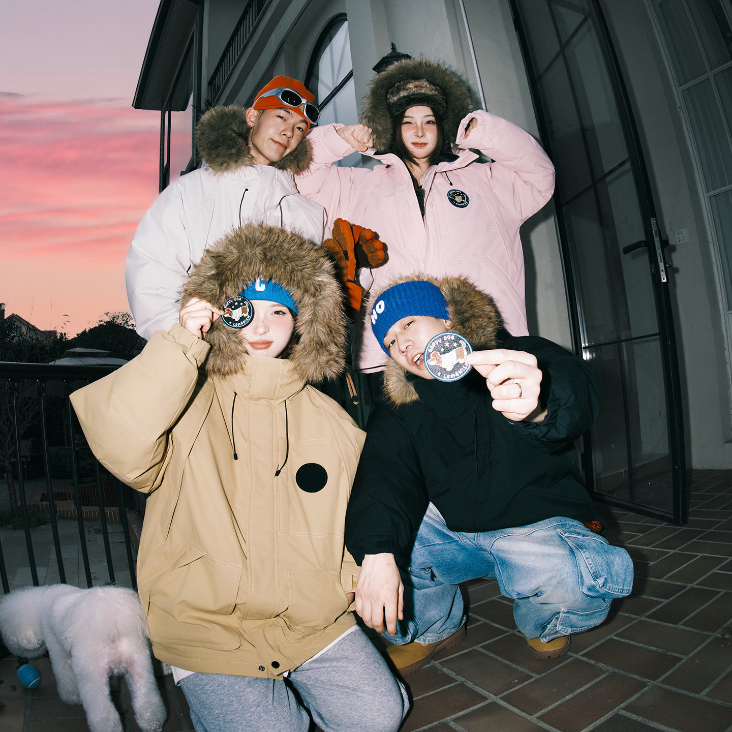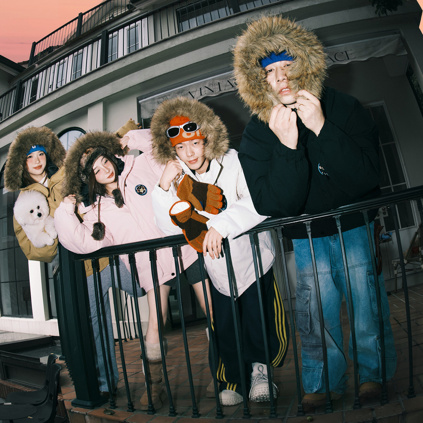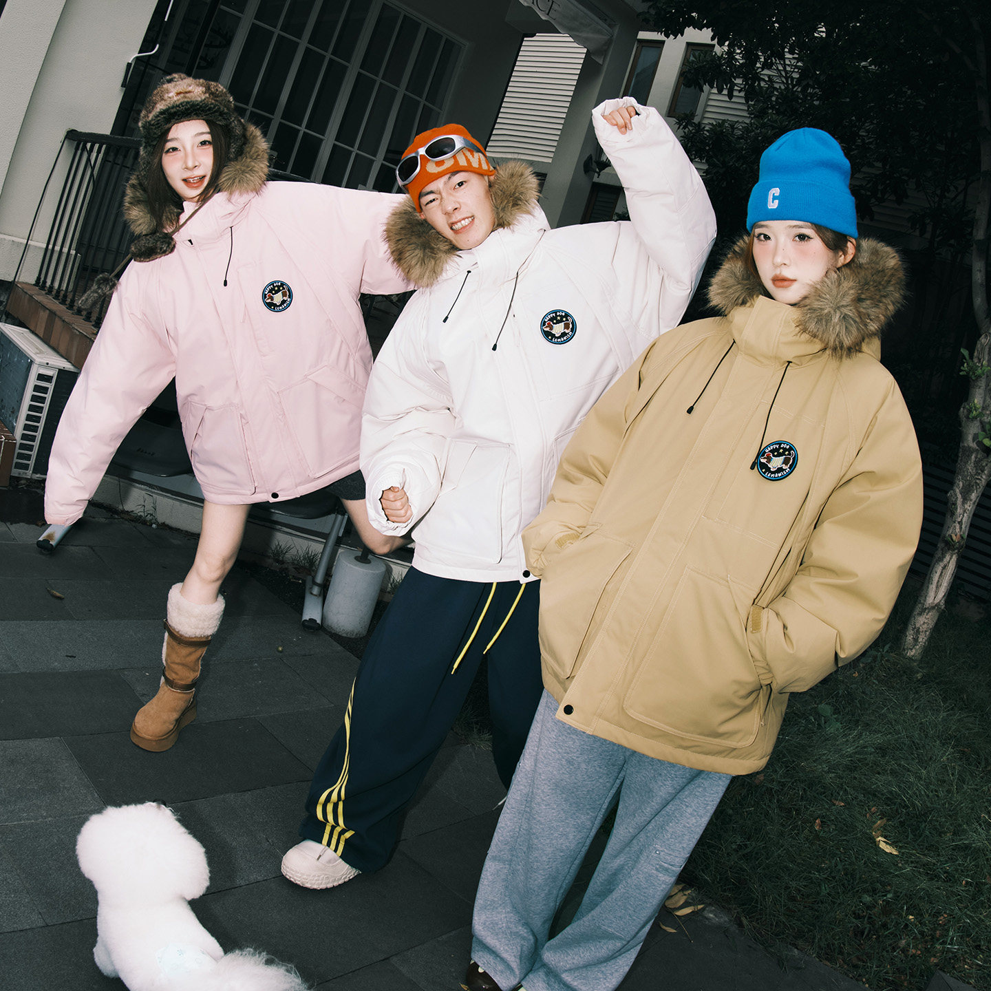 lemanism美式潮流腊肠狗徽章毛领连帽棉衣男2025情侣款保暖外套女