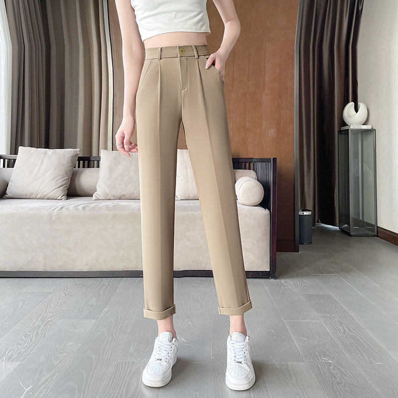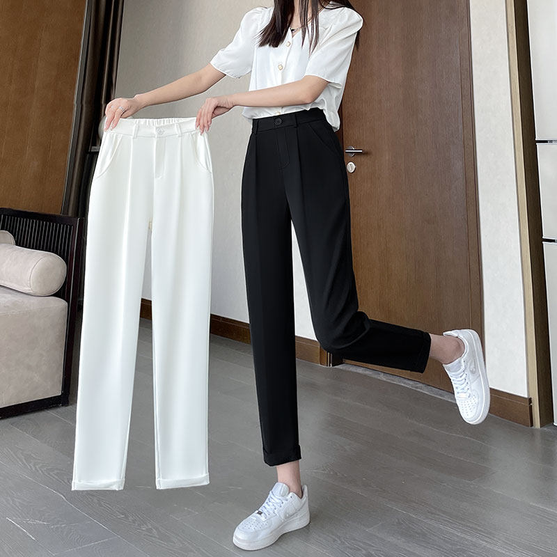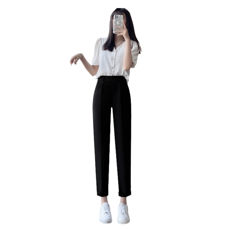 西装哈伦裤女裤子萝卜夏季薄款直筒显瘦黑色雪纺九分小脚春秋西裤