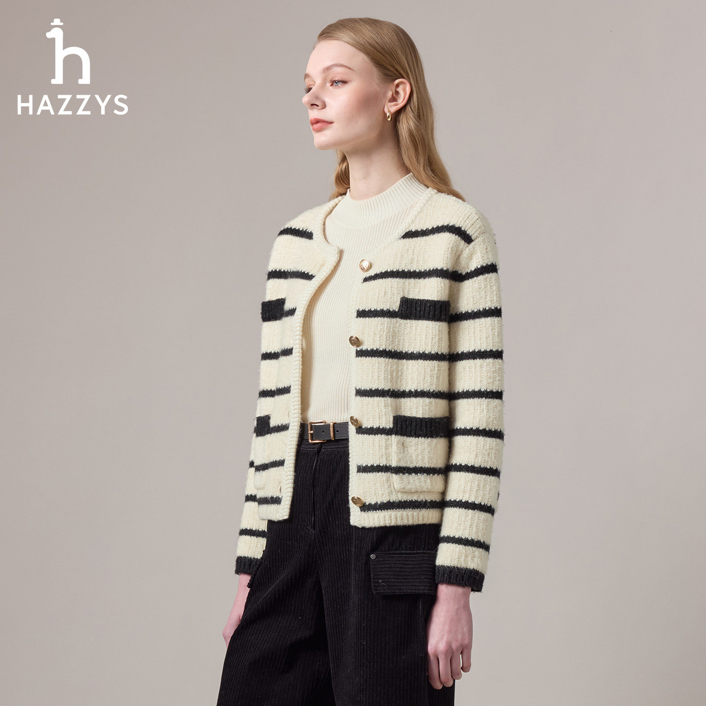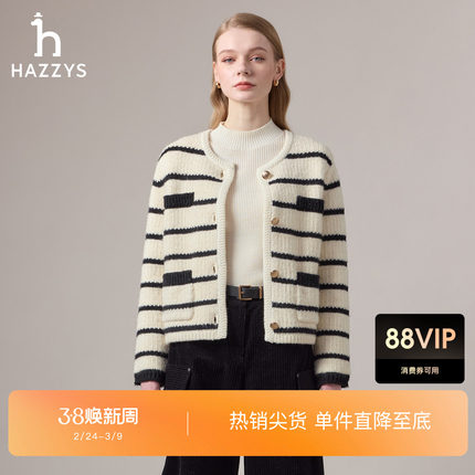 【商场同款】Hazzys哈吉斯秋季女时尚休闲小香风针织衫潮