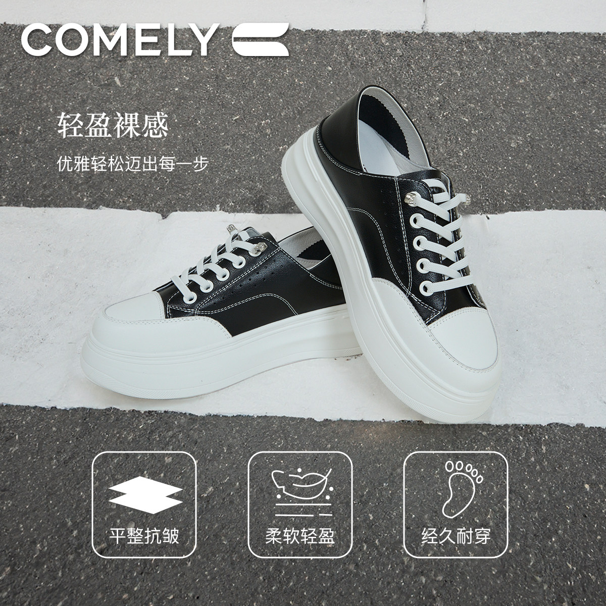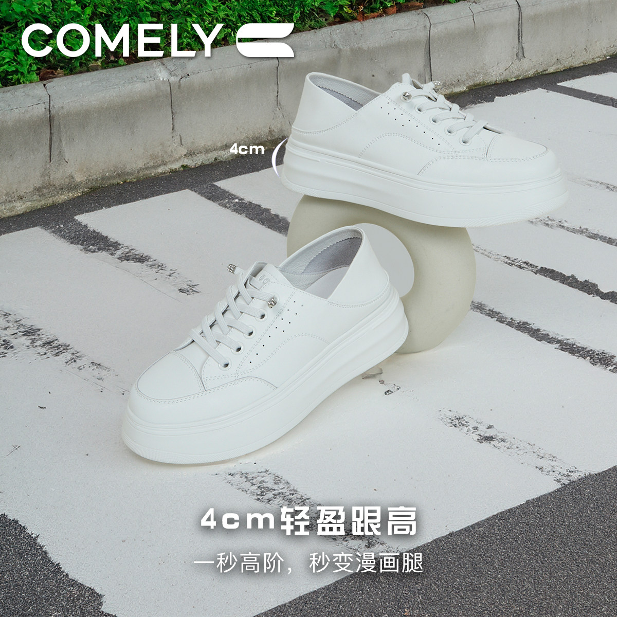 康莉时尚厚底圆头小白鞋休闲鞋
