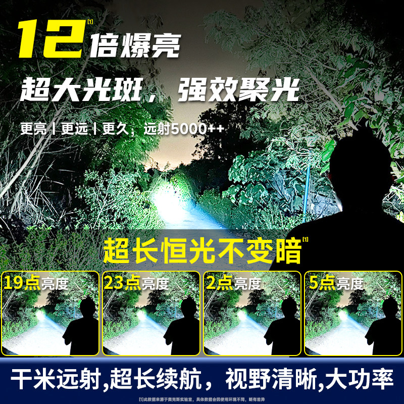 奥克斯手电筒强光充电超亮户外远射长续航大容量充电式家用探照灯