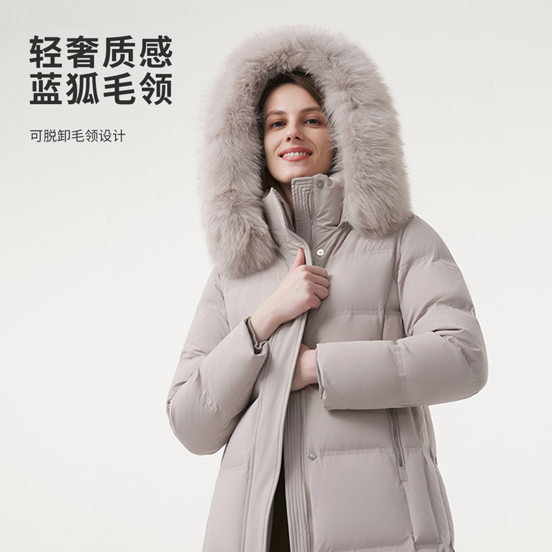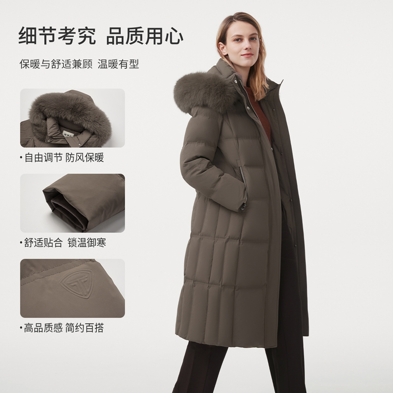 【商场同款】坦博尔官方奥莱羽绒服女长款过膝连帽加厚保暖外套冬