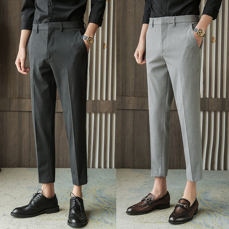 夏季薄款西裤男士九分裤免熨烫休闲裤小脚直筒西装裤子男修身9分