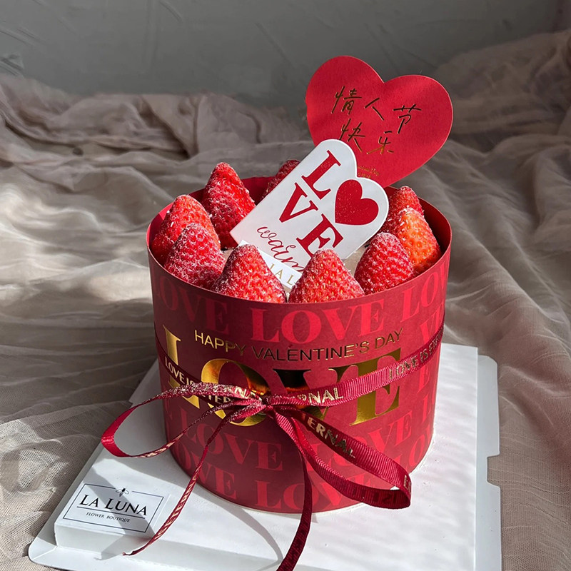 情人节快乐烘焙蛋糕装饰摆件love爱心卡片红色围边心形插牌丝带