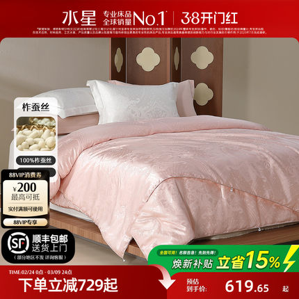水星家纺蚕丝被子母被喜被婚被结婚双人被芯二合一被婚嫁抗菌床品