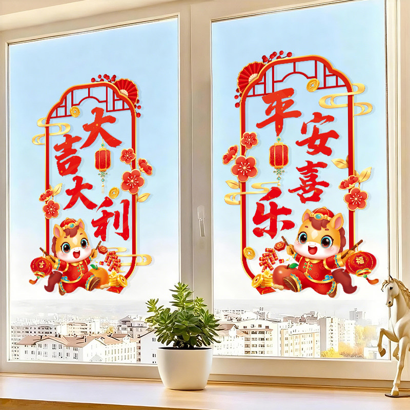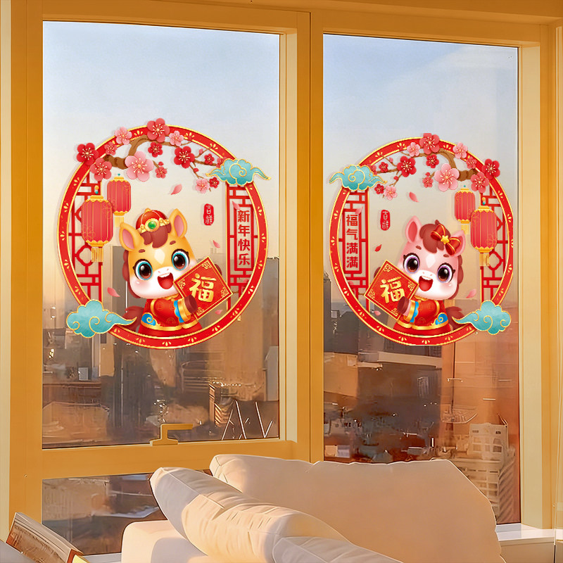 新年玻璃门贴纸2026新款双面静电窗花马年福字橱窗贴春节装饰贴画