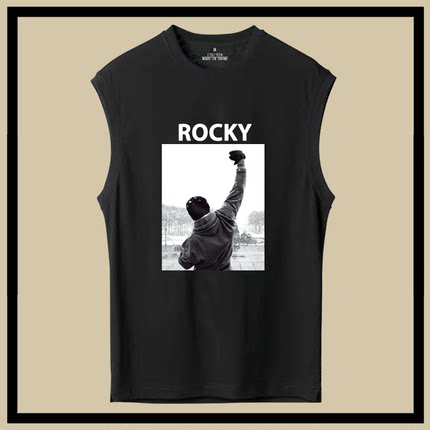 史泰龙男原宿风电影洛奇无袖T恤