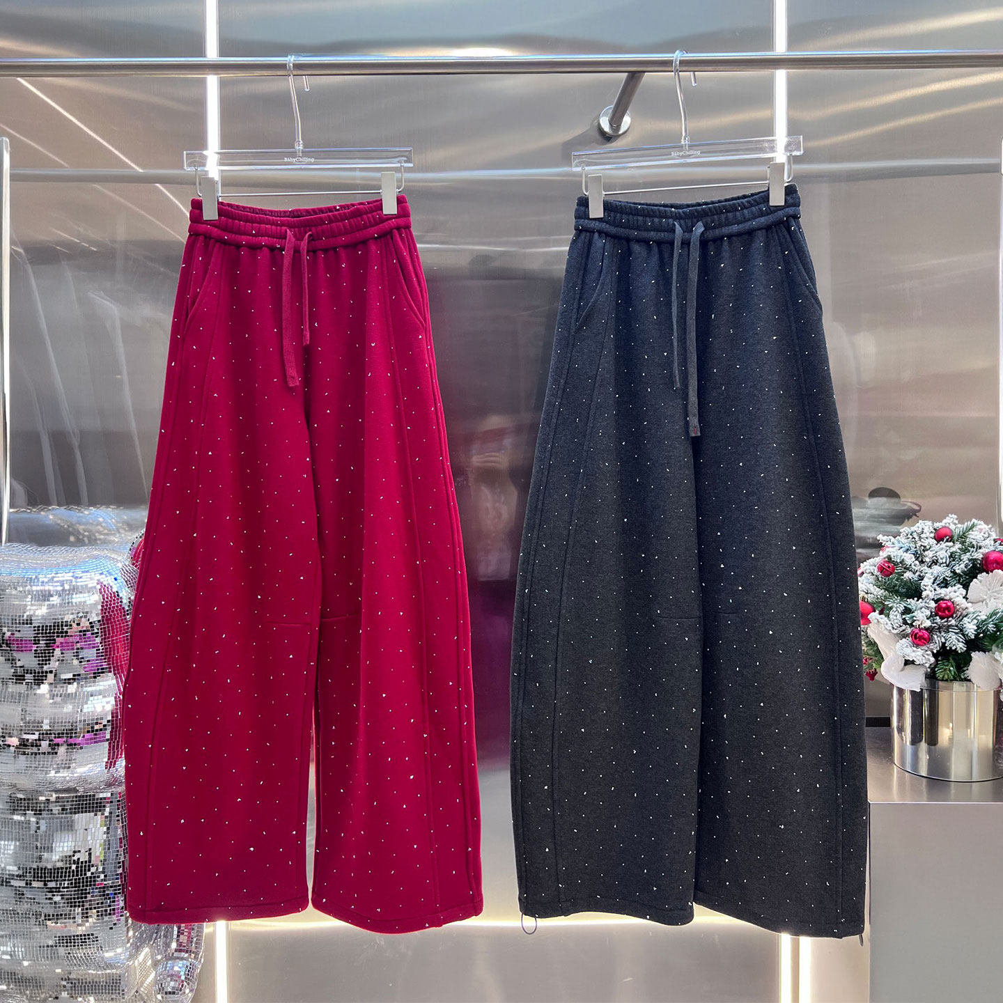 0MB.欧洲站新品英伦风南油高端保暖宽松阔腿裤满钻抽绳百搭卫裤女