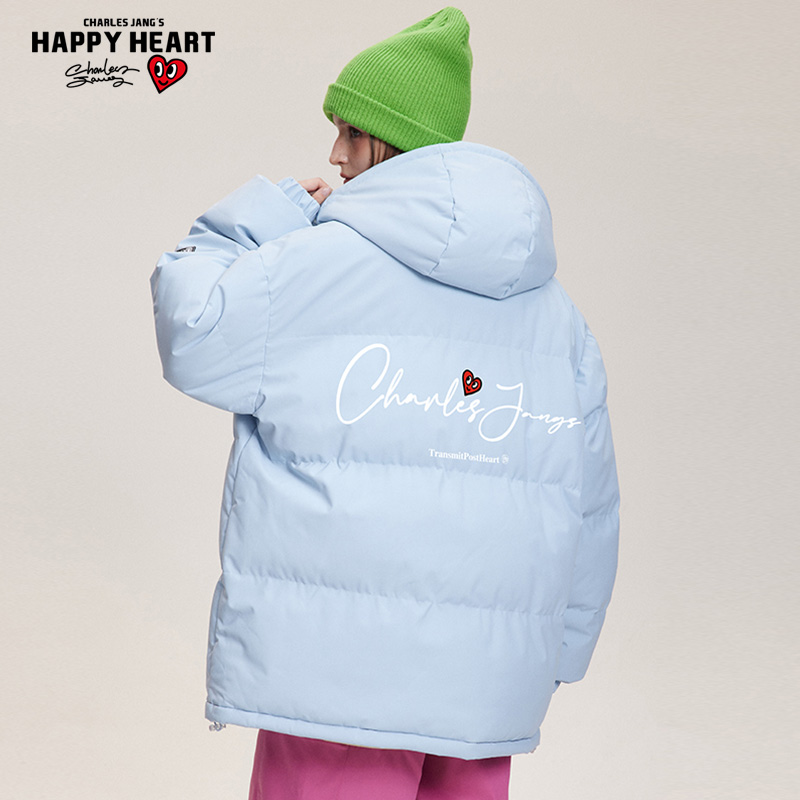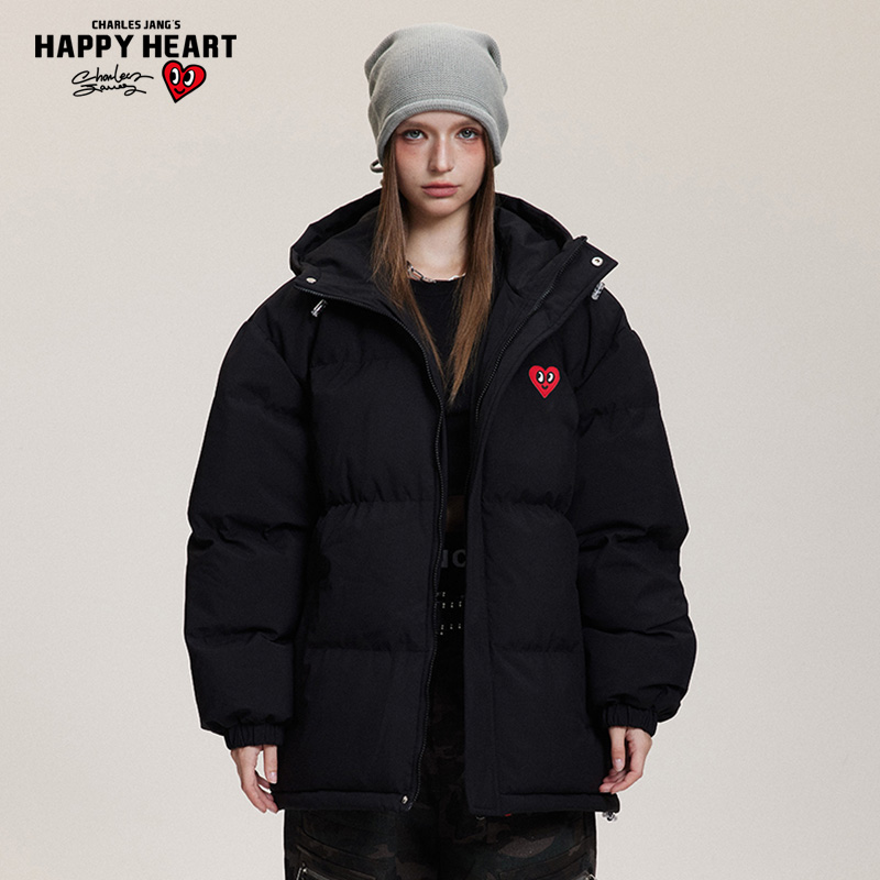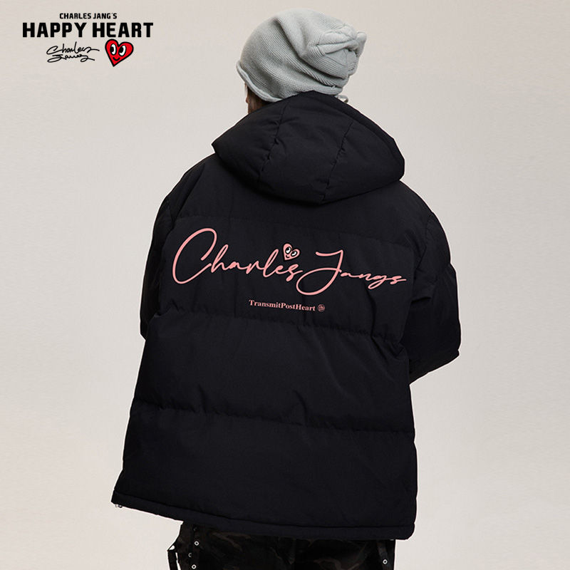 查尔斯桃心手写字母爱心棉衣男2025冬季宽松加厚连帽保暖面包棉服