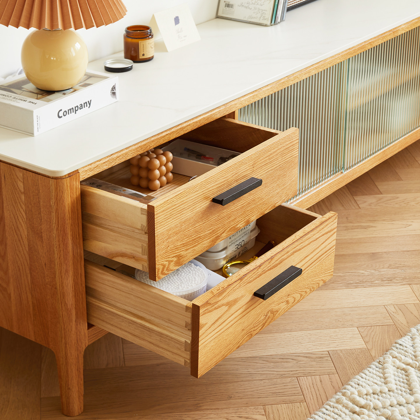北美橡木电视柜1.8米全实木电视柜2米1.5米岩板电视柜北欧简约