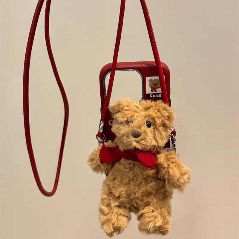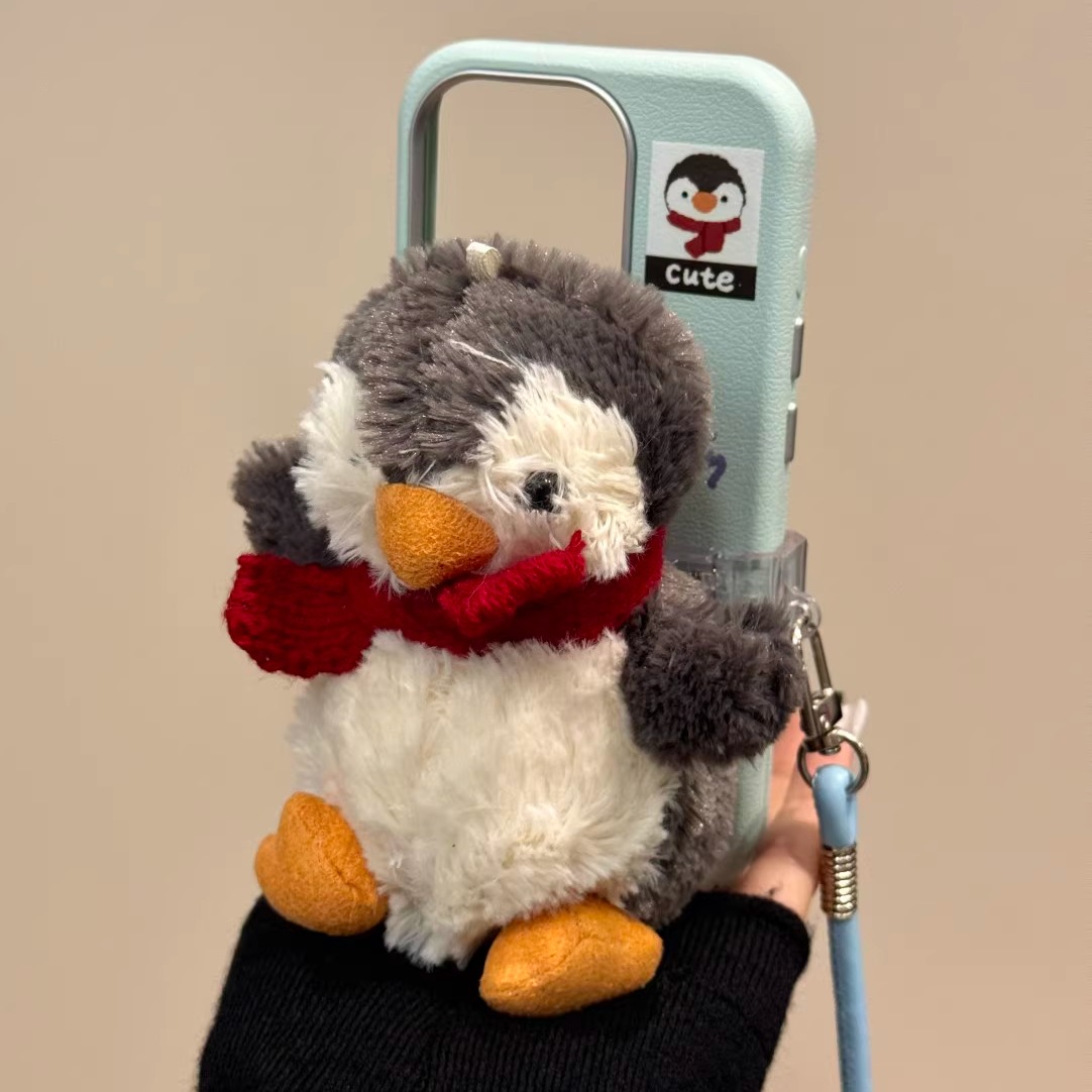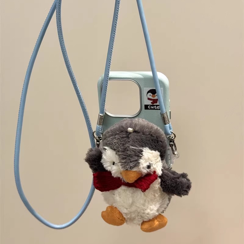 可爱卡通蓝底毛绒企鹅小熊背夹适用苹果16promax新款14pro手机壳iPhone13promax个性创意iPhone16全包边软壳