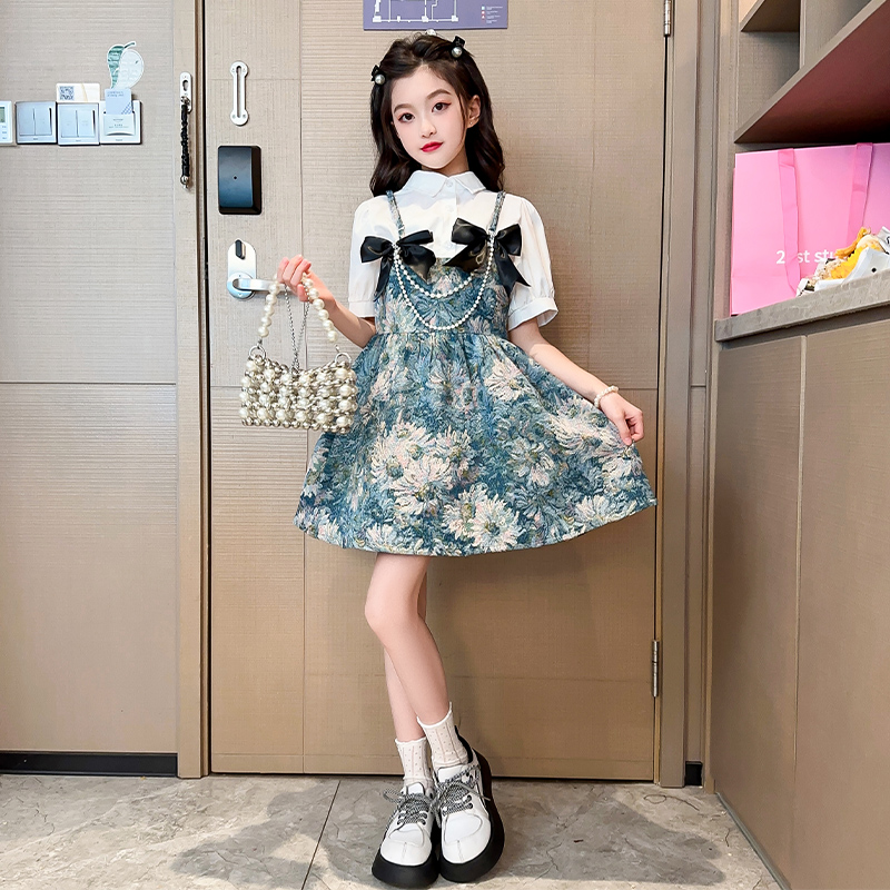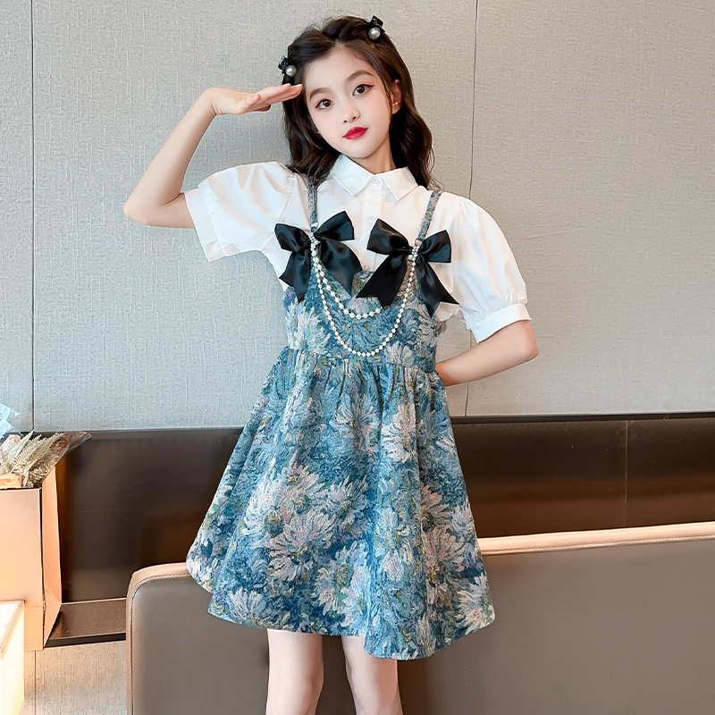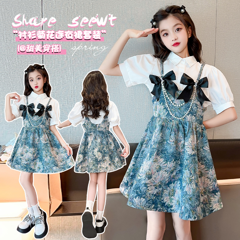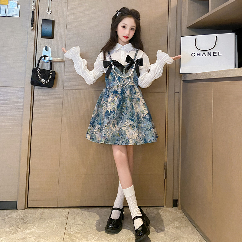 女童秋装连衣裙2025新款小女孩洋气公主裙衬衫吊带裙儿童裙子套装