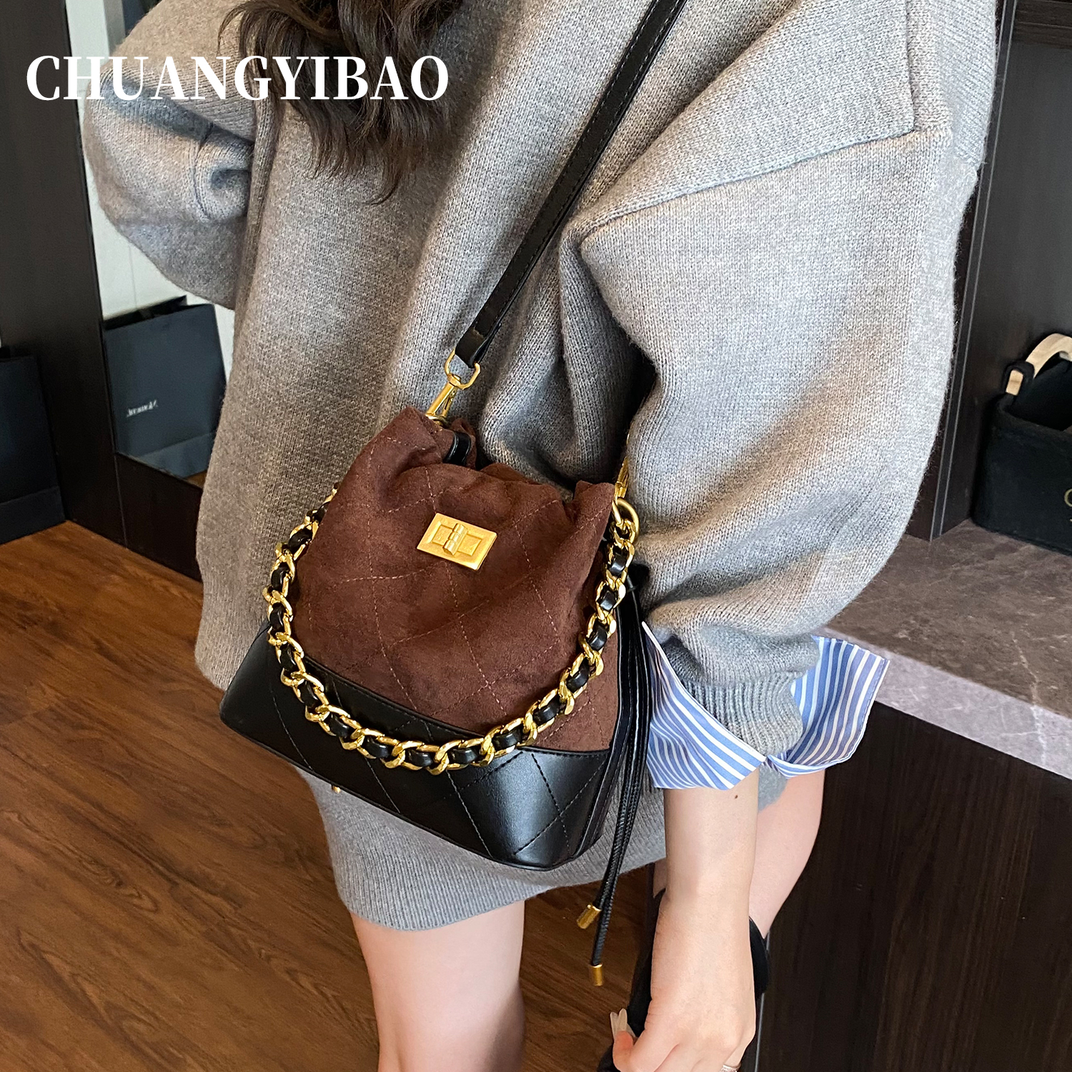 百搭链条水桶包包女式2025新款秋冬高级感轻奢小众通勤单肩斜挎包