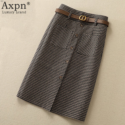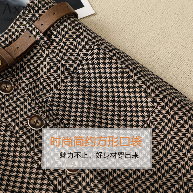 中长款包臀半身裙女秋季2025新款高腰韩版通勤百搭格子毛呢半裙