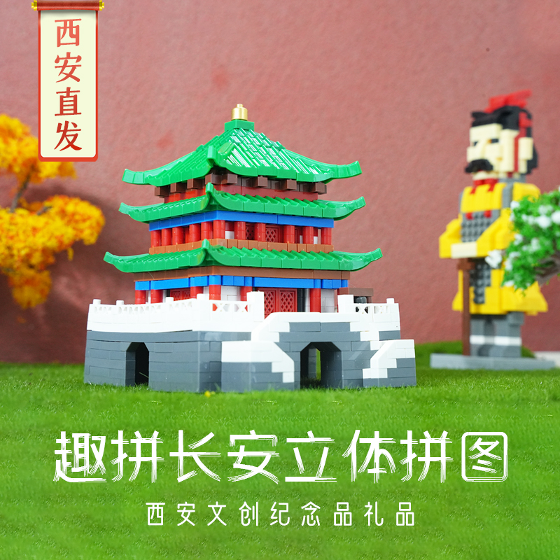 西安旅游文创纪念品儿童益智积木拼图玩具3D立体拼装古风男孩礼物
