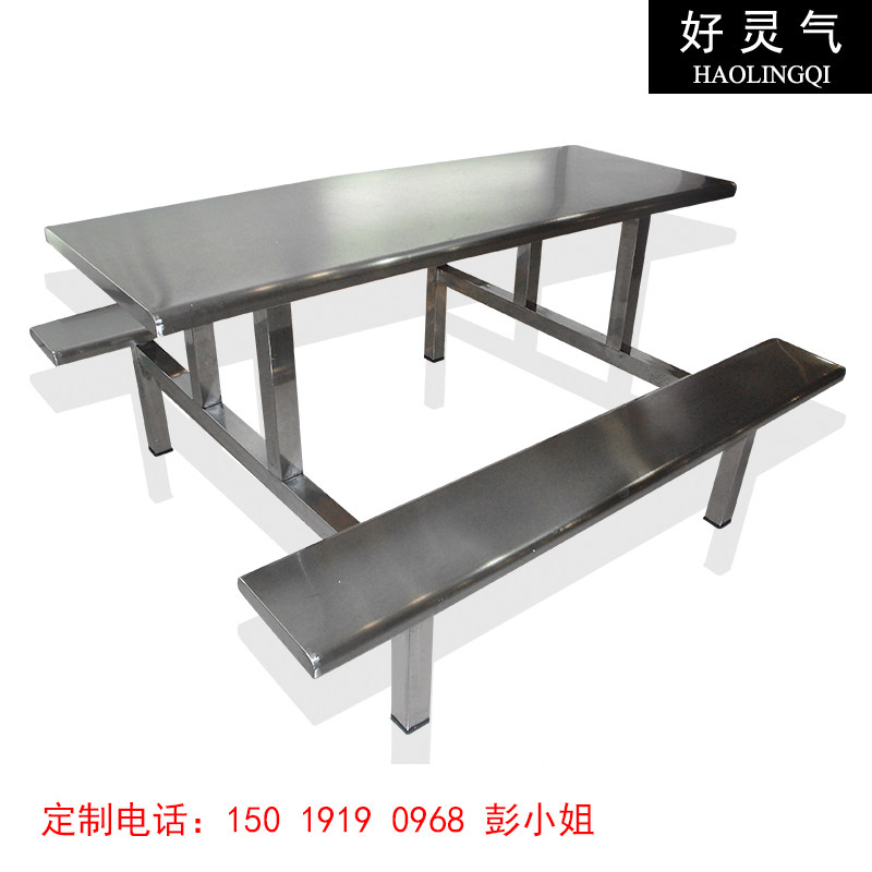 不锈钢餐桌椅连体不锈钢s桌椅 食堂不锈钢餐台 学生不锈钢食堂餐