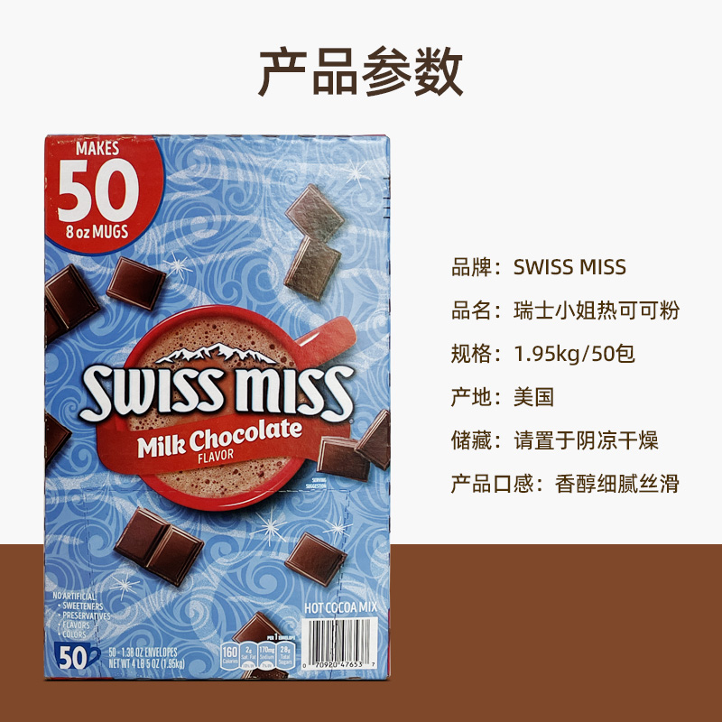 美国直邮SWISS MISS瑞士小姐进口牛奶巧克力热可可粉冲饮1.95kg