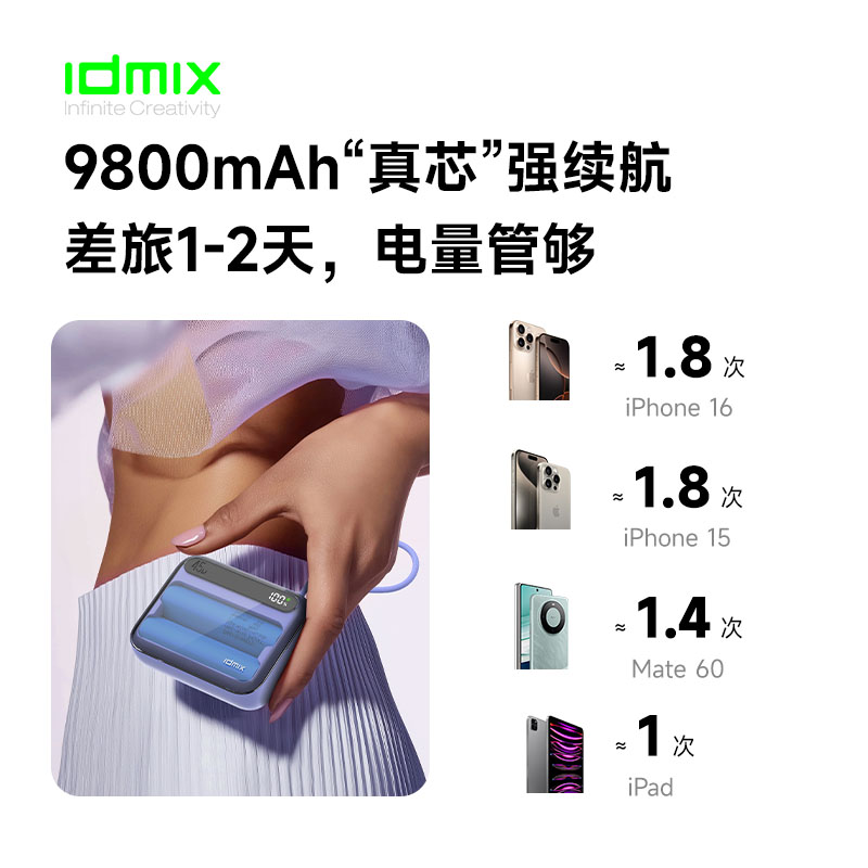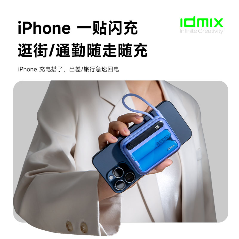 【3c认证充电宝】idmix充电宝自带线磁吸无线充PD45W快充迷你小巧便携适用iPhone17苹果16系列iWatch手表华为