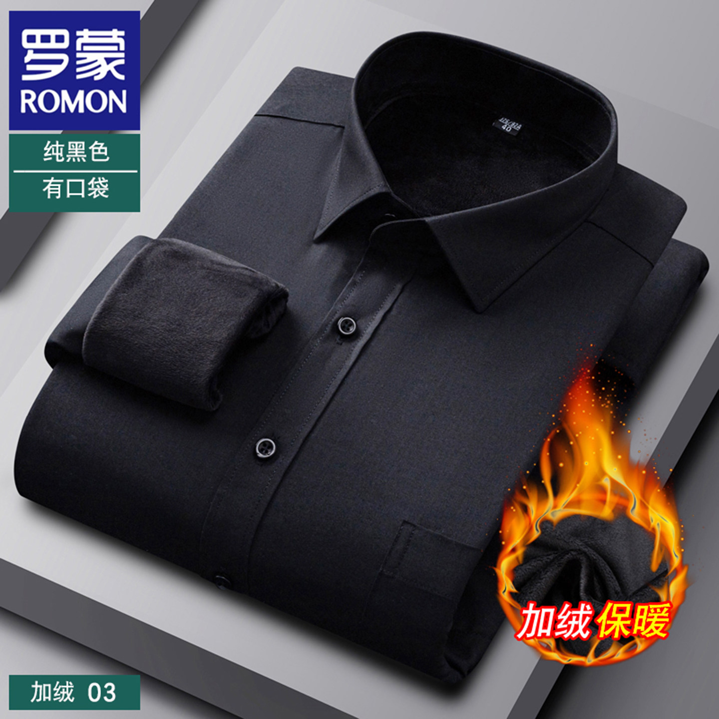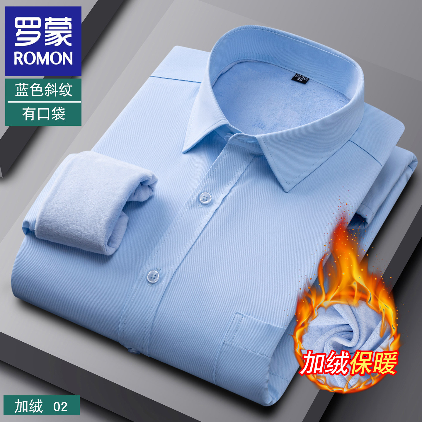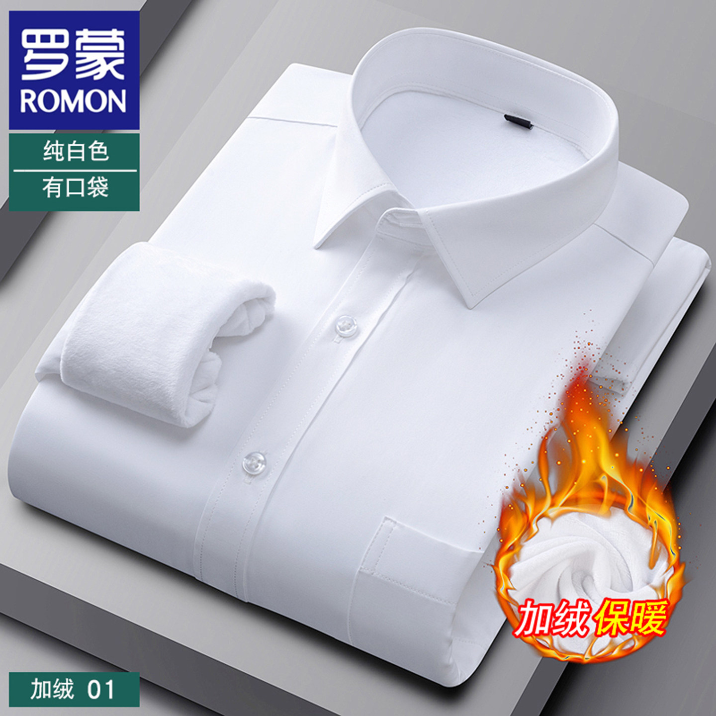【加绒保暖】罗蒙大码加厚男衬衫秋冬胖子商务宽松加肥加大白衬衣