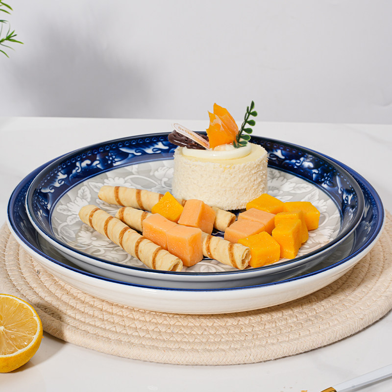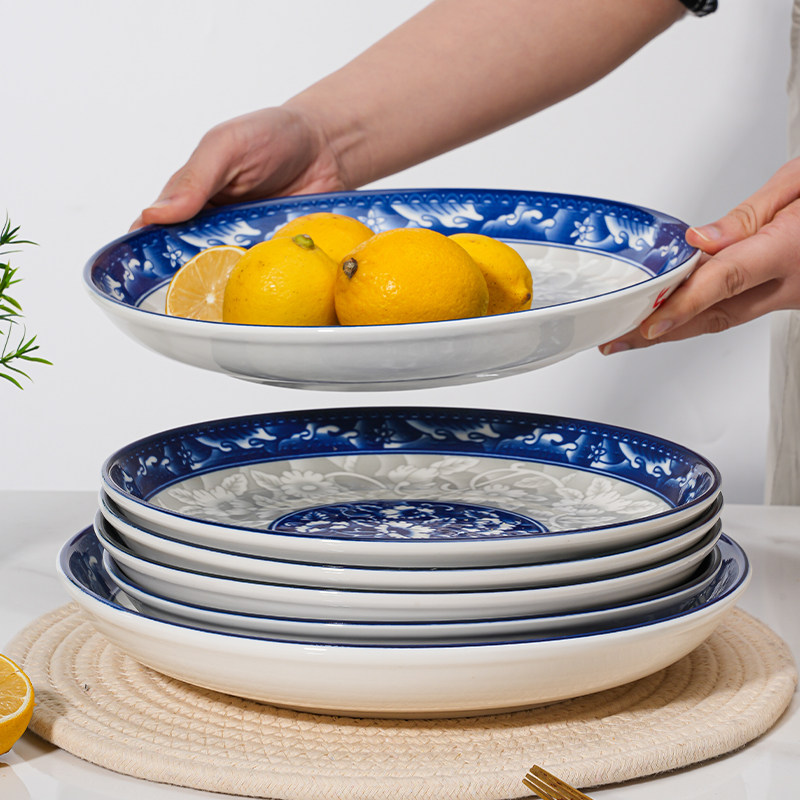 新款中式9/10英寸创意菜盘家用陶瓷青花瓷水果盘大圆盘碟盘子组合