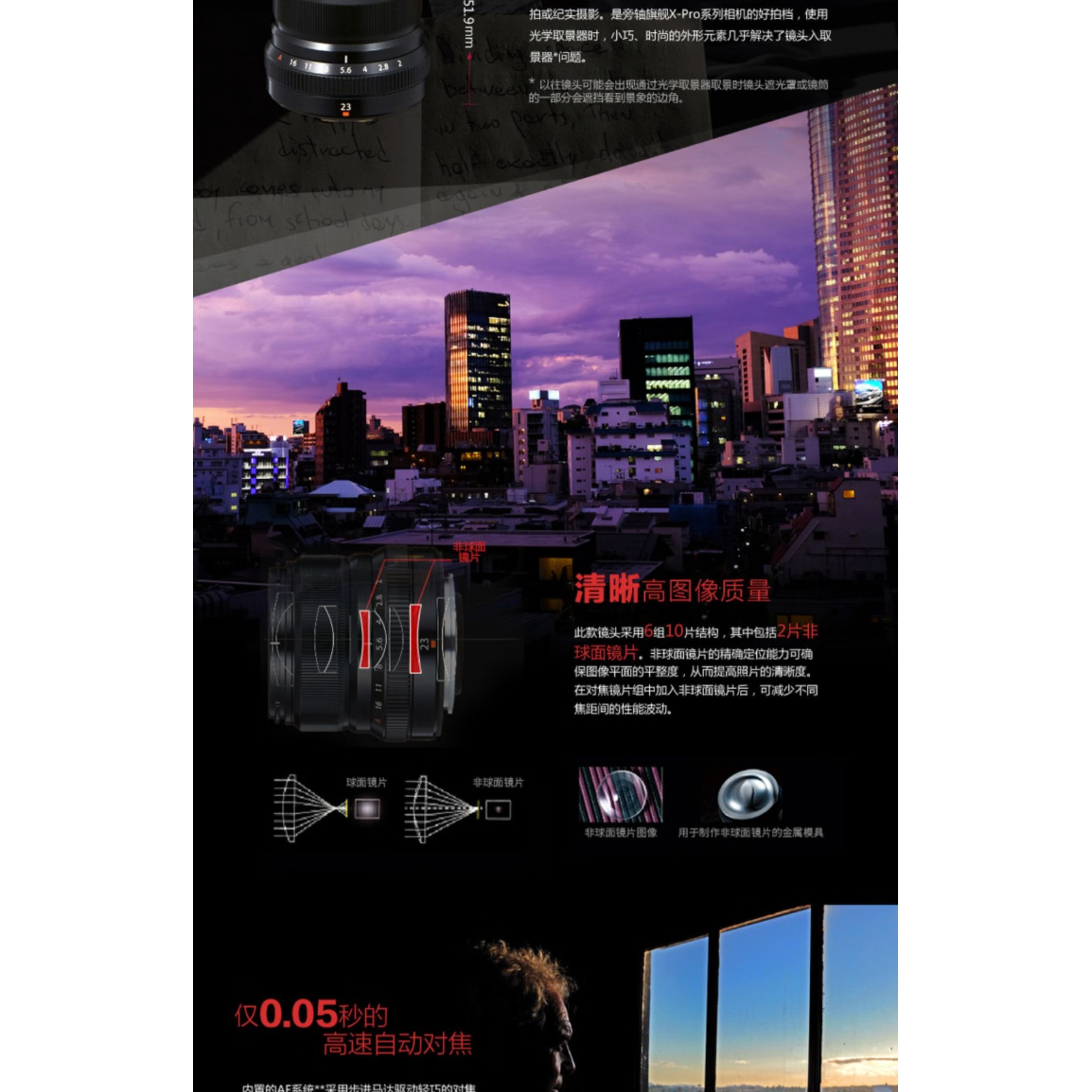 富士(FUJIFILM) XF23mm F2 R WR 定焦镜头 小巧轻便 人文/街拍
