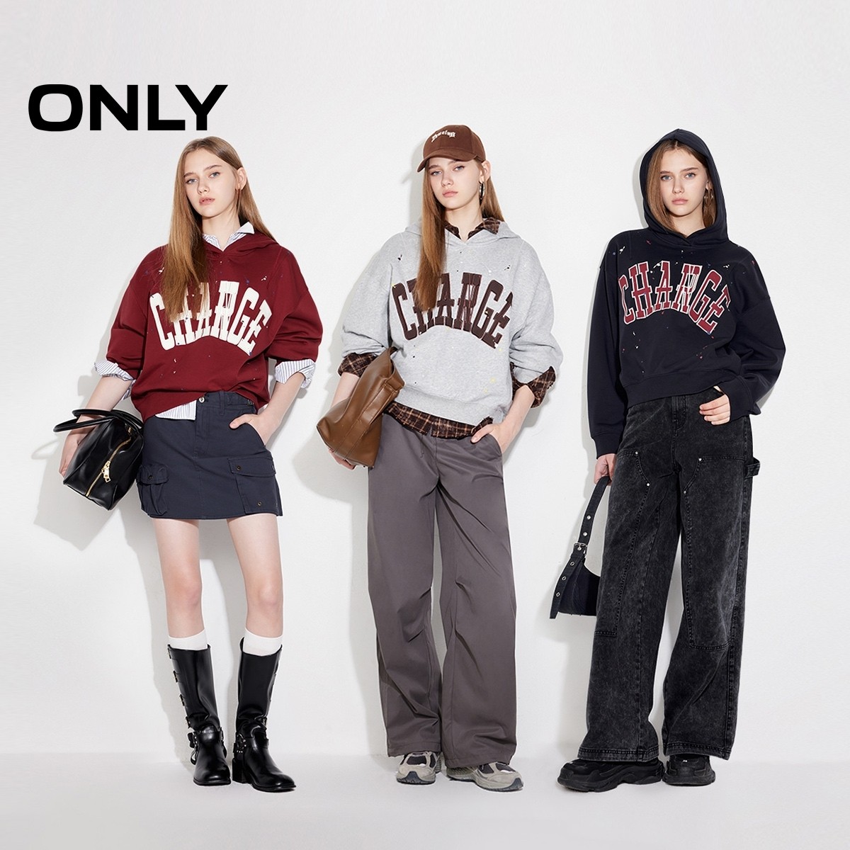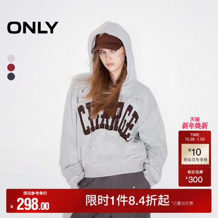ONLY奥莱2025秋冬新款休闲运动宽松字母长袖连帽卫衣女