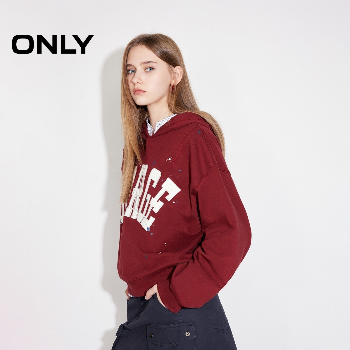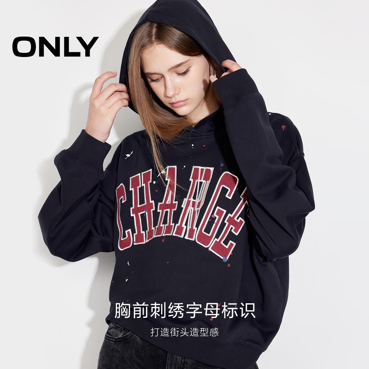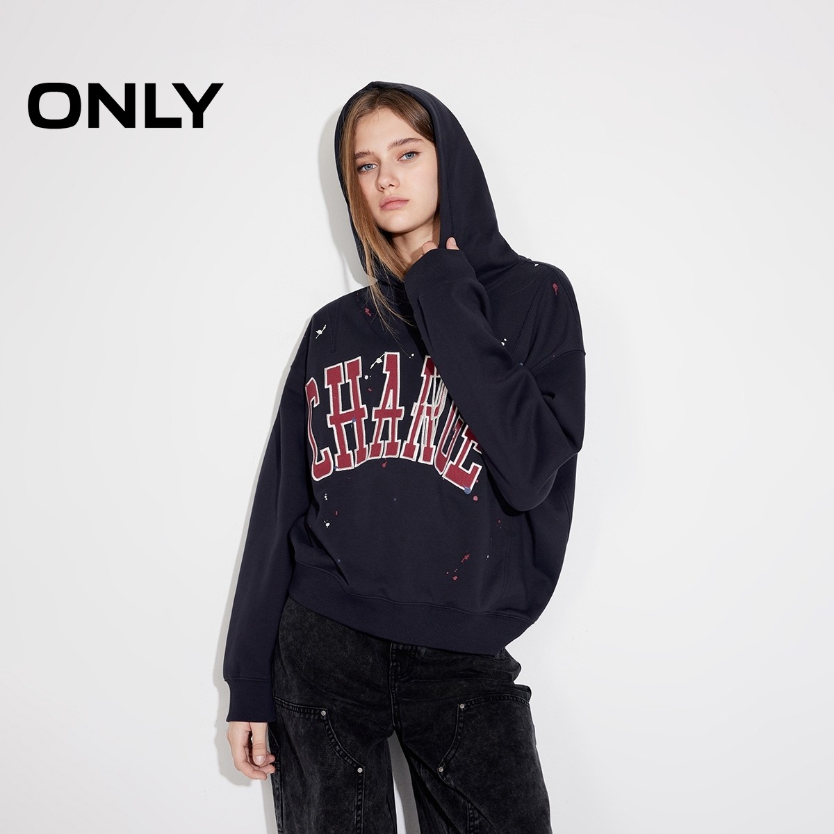 ONLY宽松字母长袖连帽卫衣