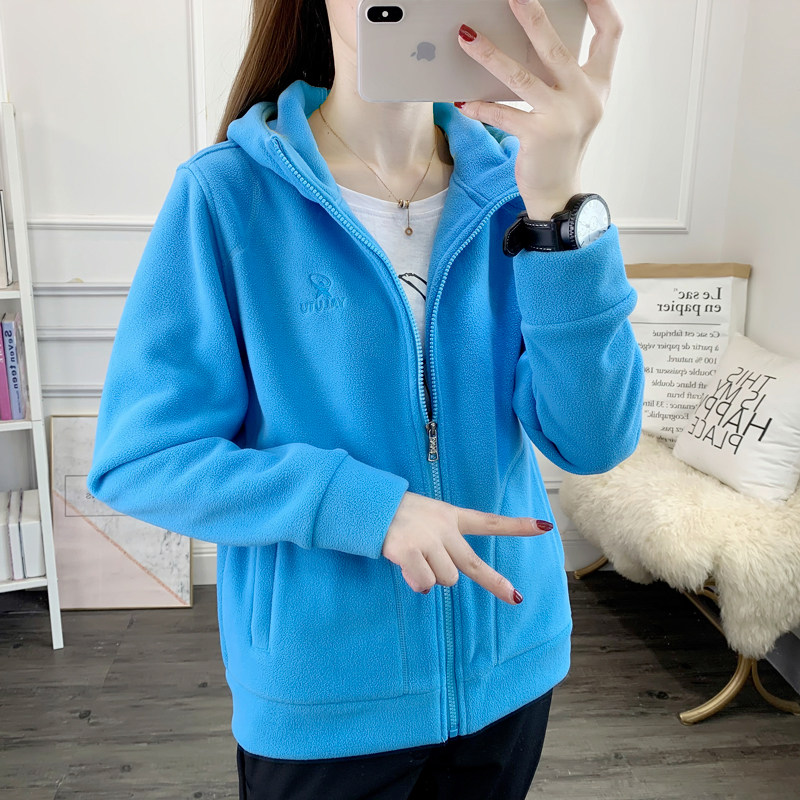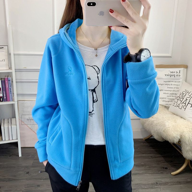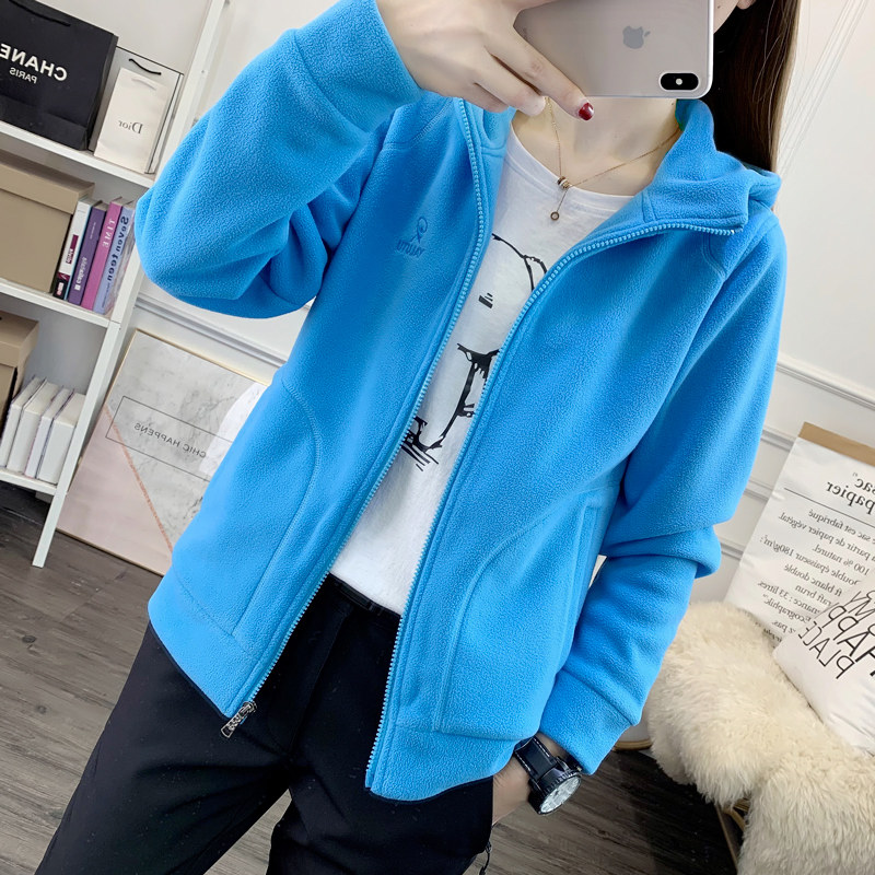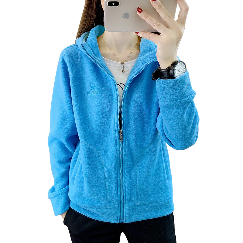 凯乐石薄荷户外运动连帽抓绒衣女上衣摇粒绒开衫保暖登山徒步卫衣