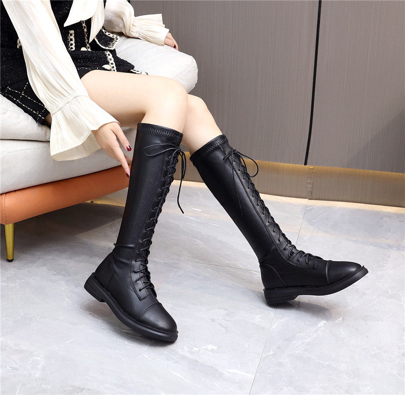 长筒靴女2025秋冬季新款显瘦绑带马丁靴不过膝高筒英伦平底骑士靴