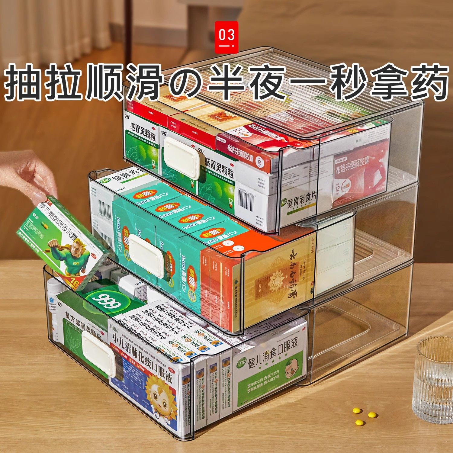 日本桌面抽屉式收纳盒办公室化妆品药品药物医药箱透明杂物收纳箱