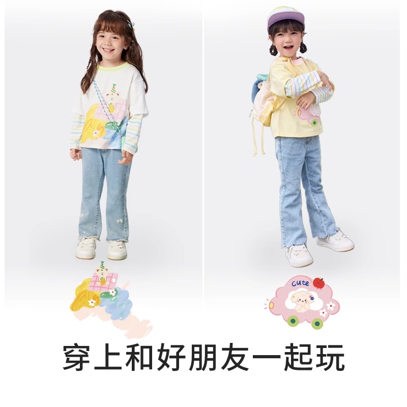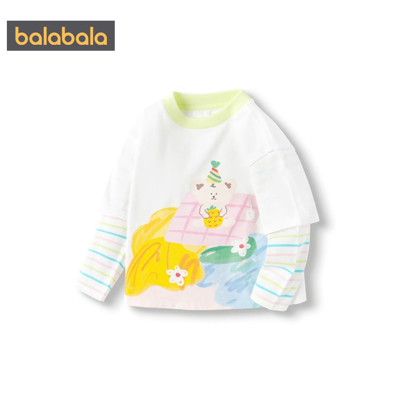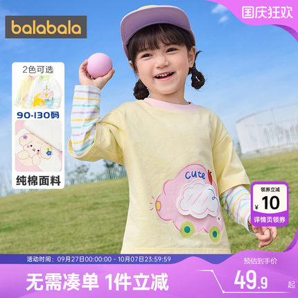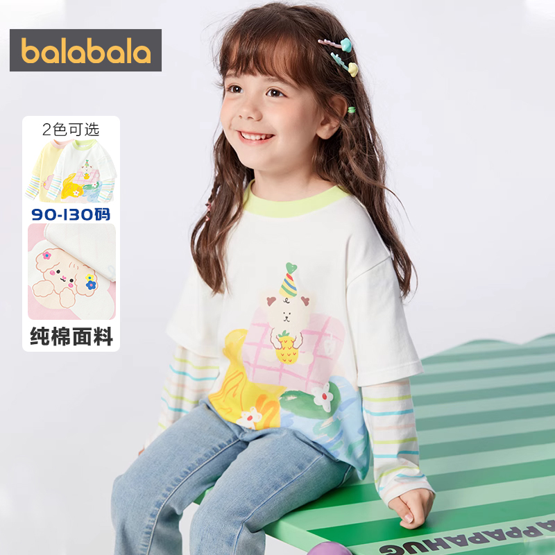 巴拉巴拉女童长袖T恤纯棉假两件打底衫春秋新款儿童白色上衣冬季