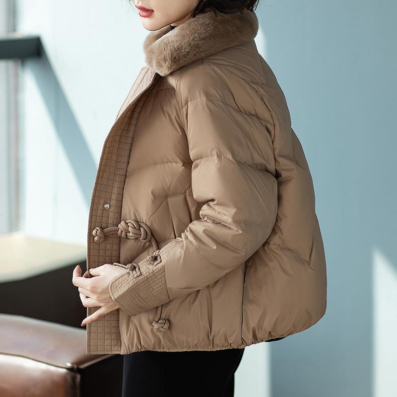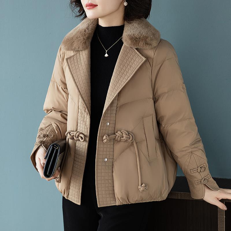 年轻妈妈秋冬外套时尚洋派短款2025新款加厚羽绒服中老年人女冬装