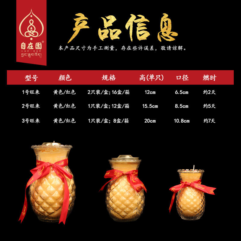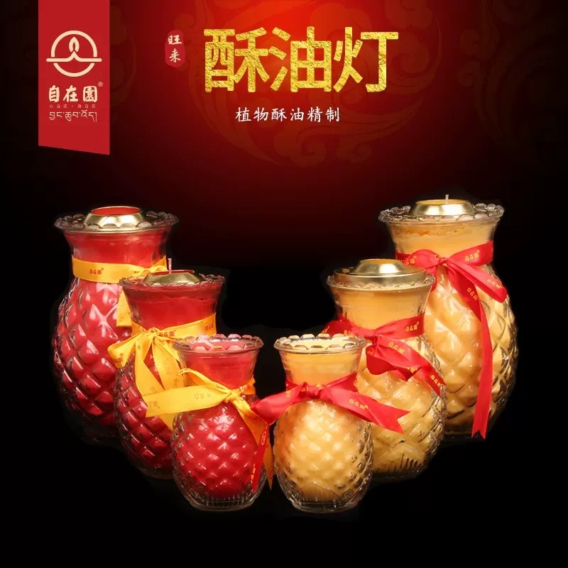 自在园菠萝酥油灯 植物油2天5天7天 家用无烟蜡烛 旺来防风酥油灯